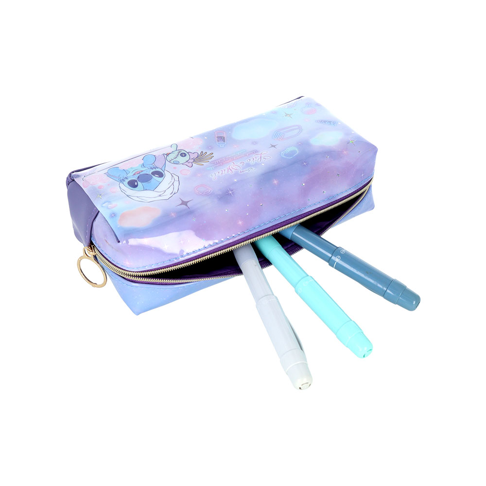 人形の「スクランプ」とお風呂に入る「スティッチ」のキラキラペンケース。