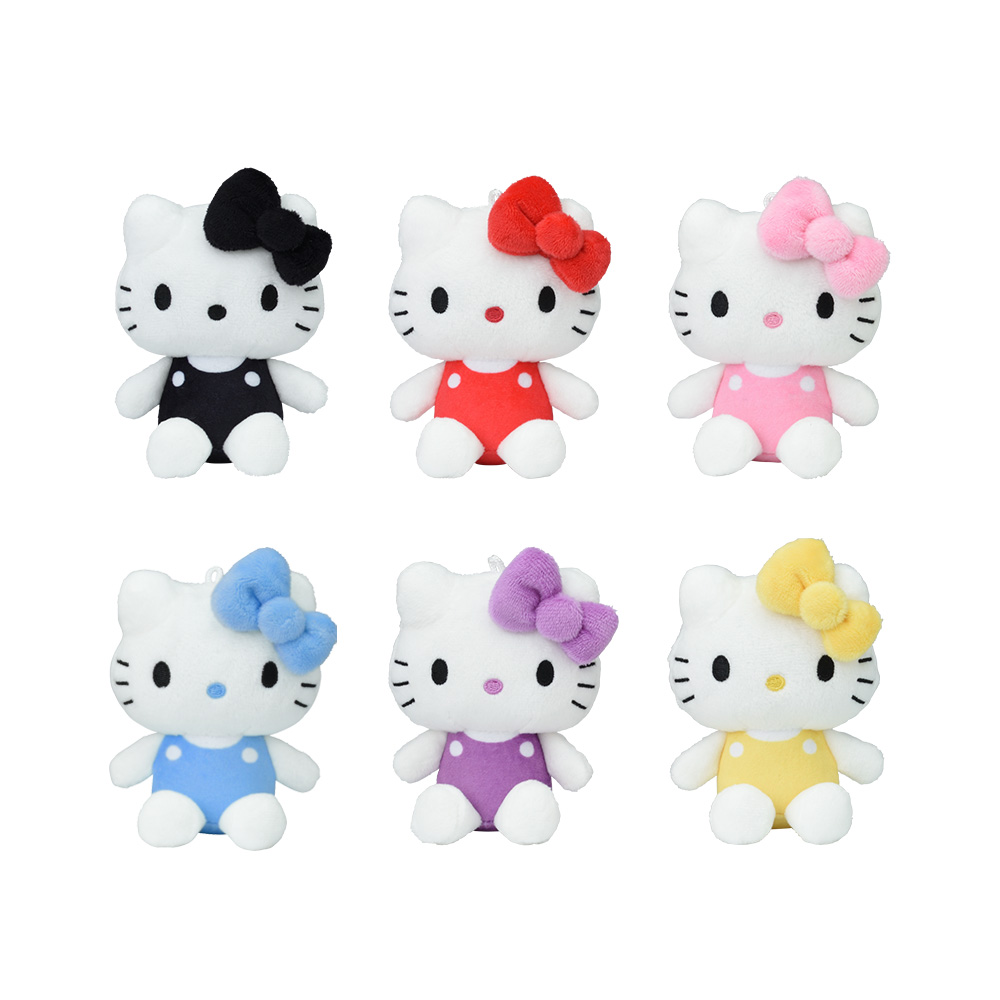 ケーキをイメージしたカラーリングがかわいいぬいぐるみや、カラフルな「ハローキティ」のマスコットなど全4種がラインナップされます。