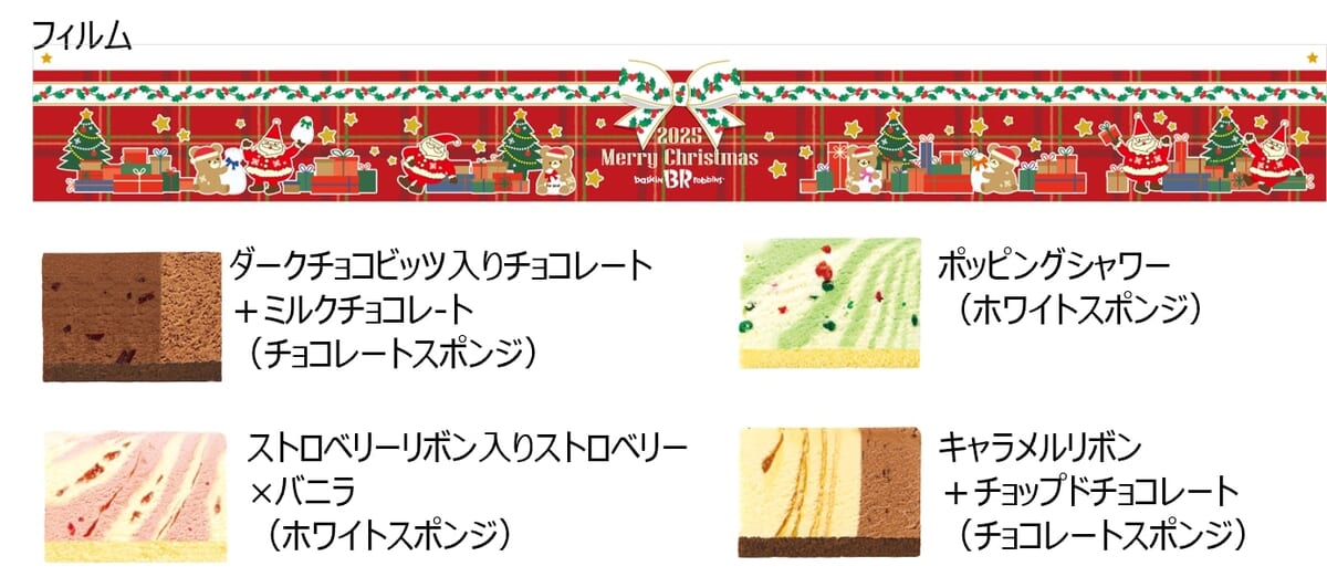 ケーキ自体が大きなプレゼントに見えるよう、フィルムは赤い包装紙と大きなリボンでかわいらしいデザインに仕上げられているのも特徴。