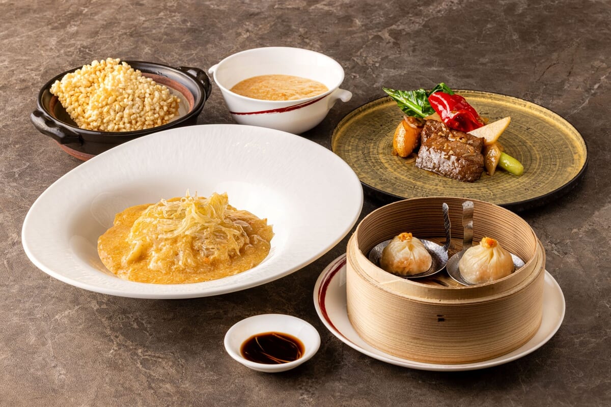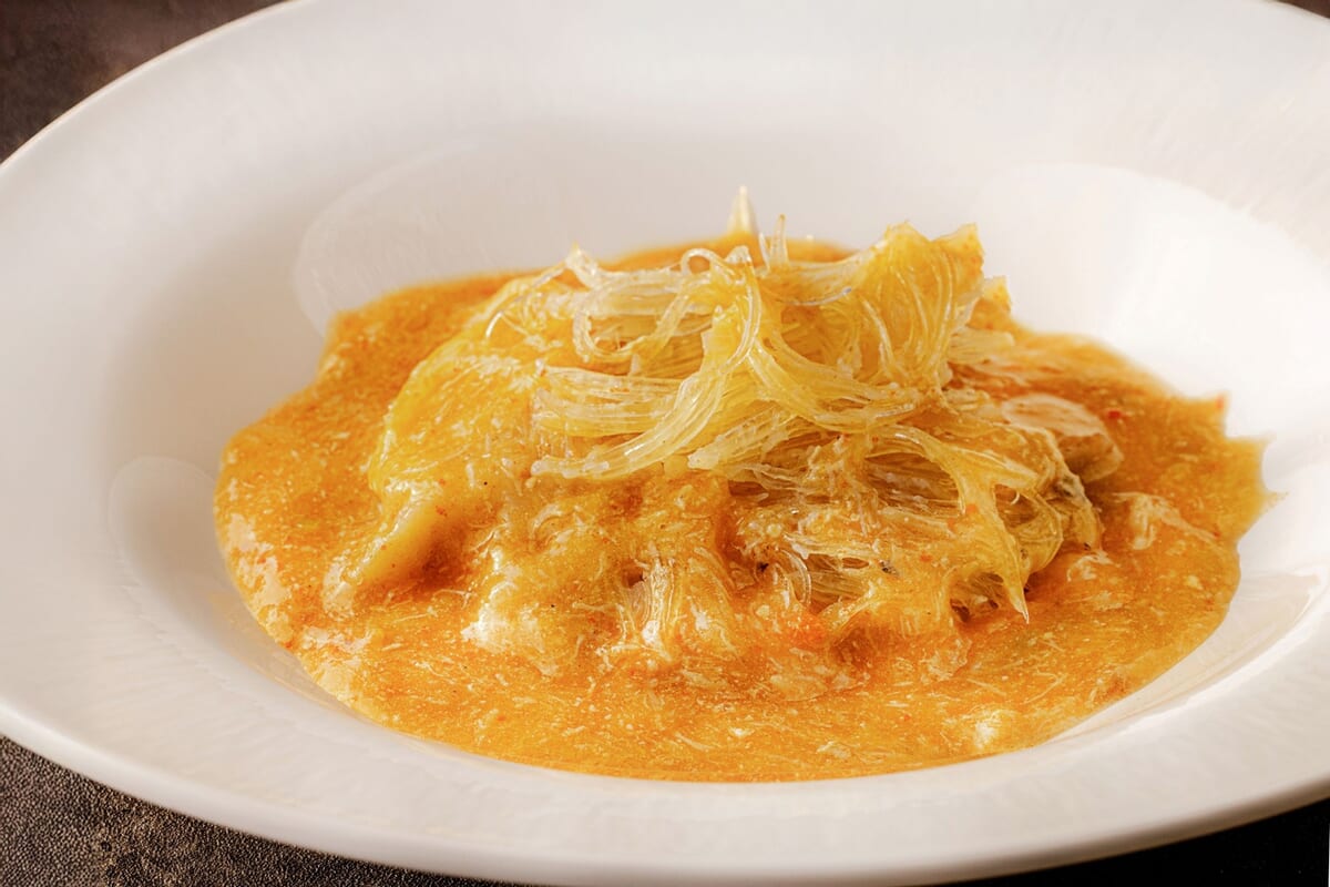 弾力ある海のコラーゲンを濃厚な蟹味噌ソースでじっくり煮込んだ逸品や、手作りの皮で新鮮な蟹肉と蟹味噌を包み、蒸籠でふっくらと仕上げる「小籠包」などが登場します。