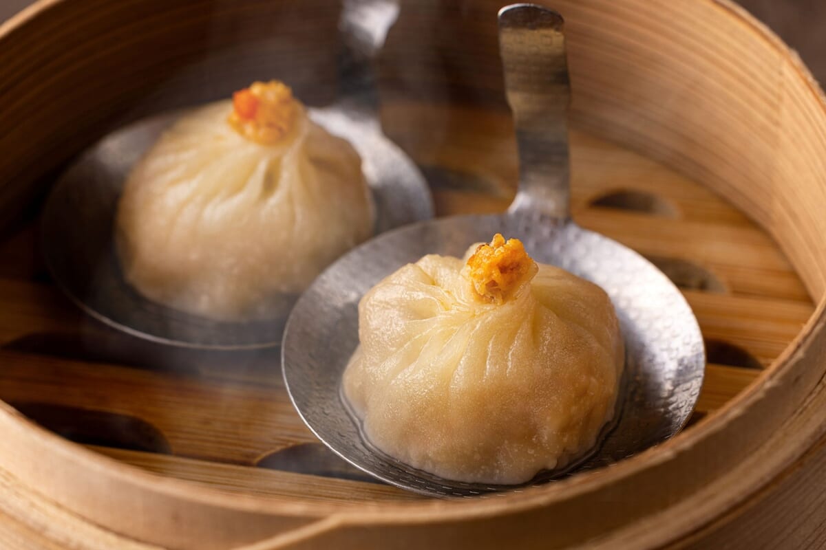 上海蟹の蟹肉と蟹味噌入り小籠包