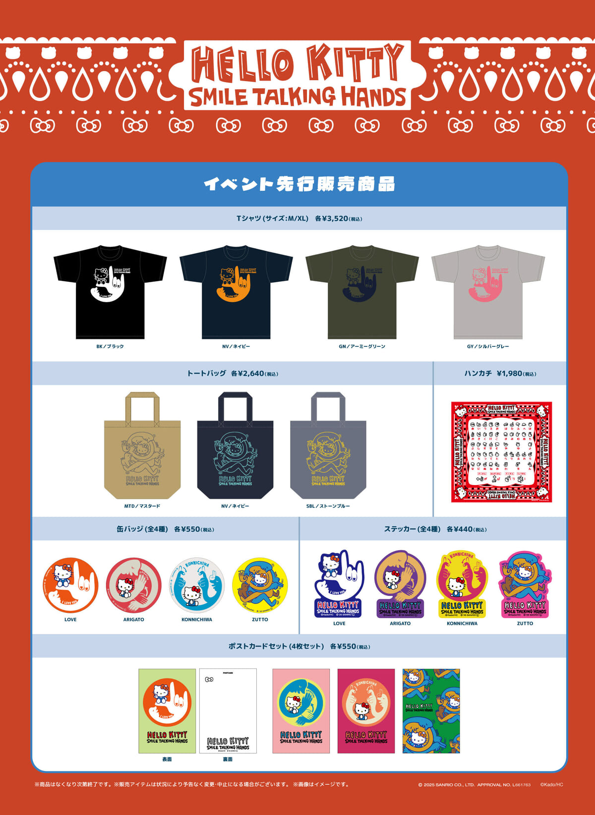 ”手話”と「ハローキティ」のポップなデザインを使用したTシャツやトートバッグ、ステッカーなどが展開されます☆