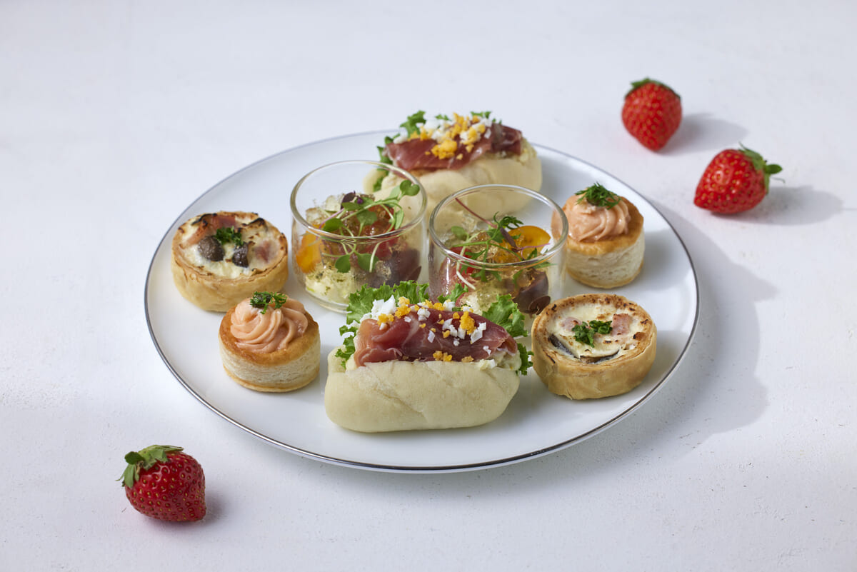 甘酸っぱい苺の心弾むスイーツと、春の訪れを感じさせるセイボリーがそろっています。