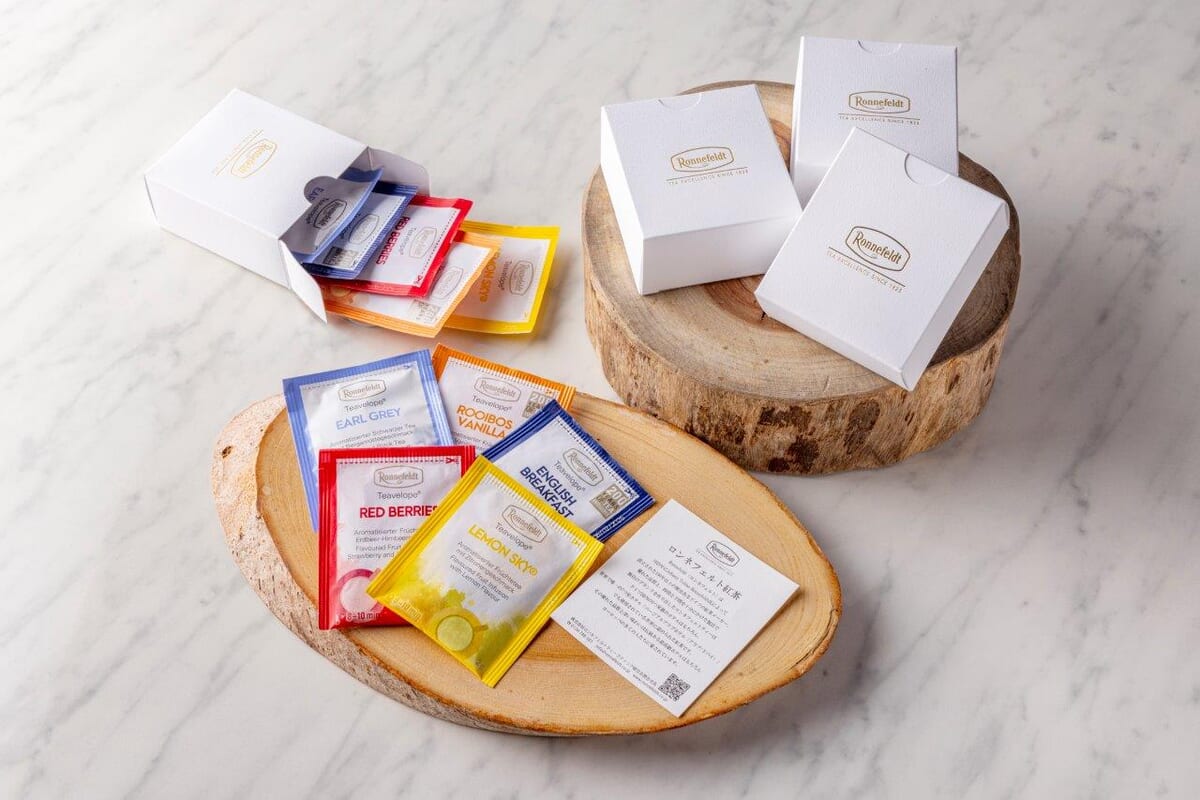 - 14種のロンネフェルトの紅茶:レッドベイクドアップル / ルイボスウィンタープラム / ルイボス / モルゲンタウ / イングリッシュブレックファスト / アッサムバリ / アールグレイ / ダージリンサマーゴールド / アイリッシュウィスキークリーム / チルアウトウィズハーブ / カモミール / ペパーミント / バイタルグレープフルーツ / アーユルヴェーダ ハーブ&ジンジャー