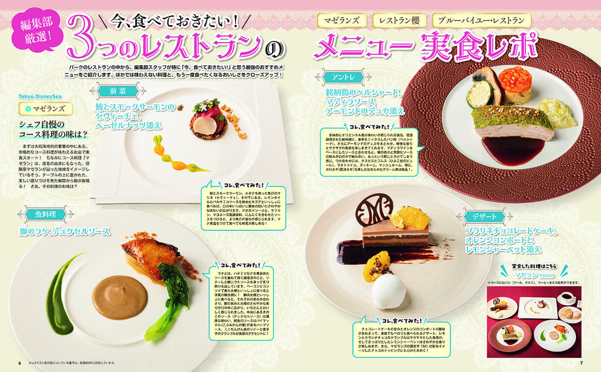 ほかにも読者に人気のパークで役に立つ「食べたいメニューがひと目でわかるレストランMAP」、レストランの持つ物語を紹介した「食もエンターテイメント! 知られざるBack Ground Story」、長く愛されるメニューの開発秘話に迫る「ロングセラー物語」などコラムも充実しています。