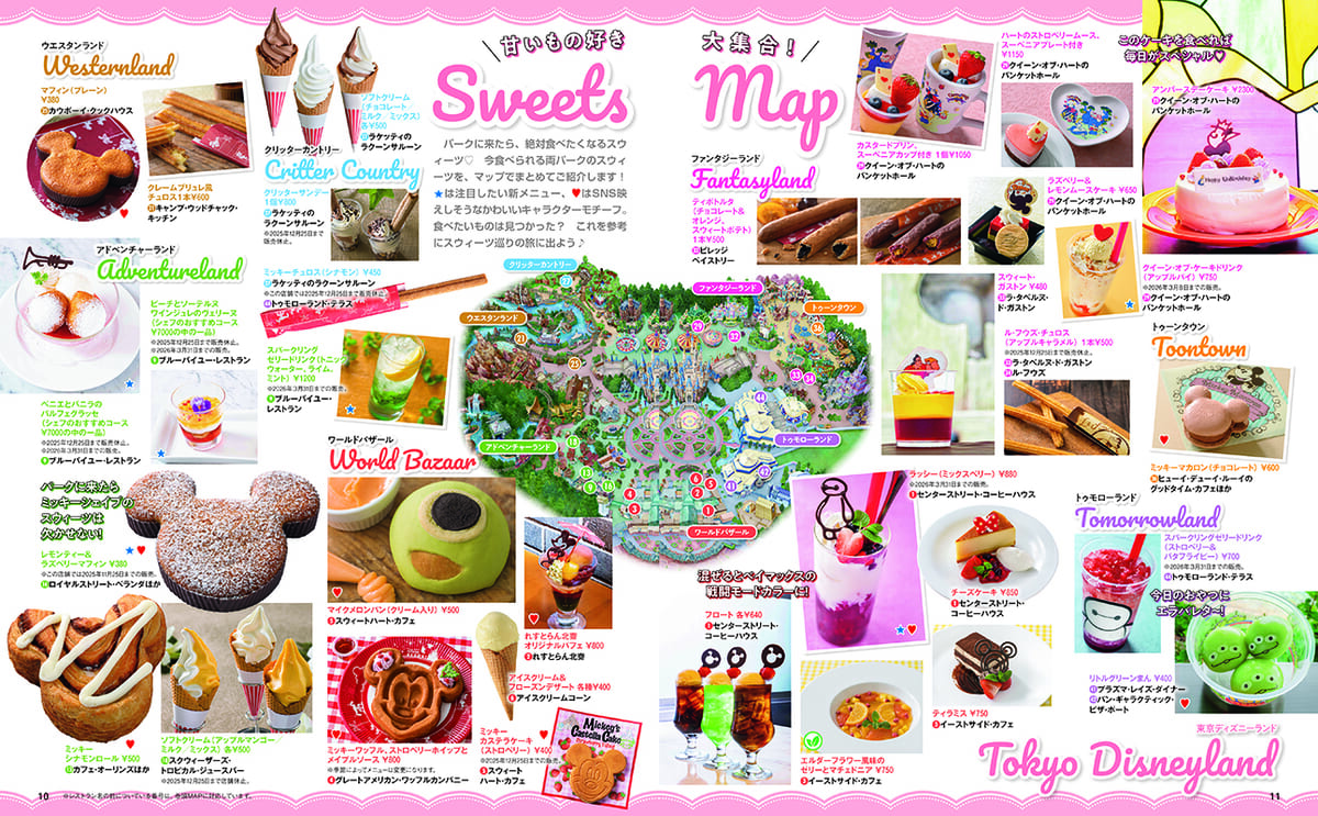 また、巻頭の「Sweets Map」では新メニュー、キャラクターモチーフのメニューが一目でわかるよう、印付きで紹介しています。