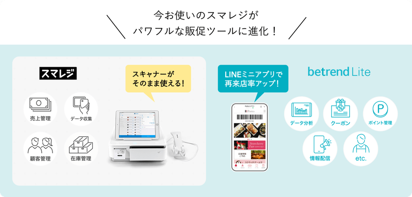 顧客管理プラットフォーム『betrend』を開発・販売するビートレンドは、新ソリューション『betrend Lite』の第一弾として、『betrend Lite for スマレジ』をリリースしました。