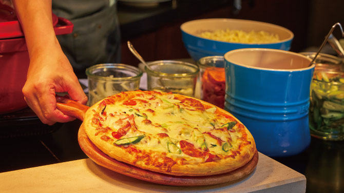 テイクアウトできる焼きたてピザもあり、家族や仲間と楽しむパーティーの1品にもおすすめです!