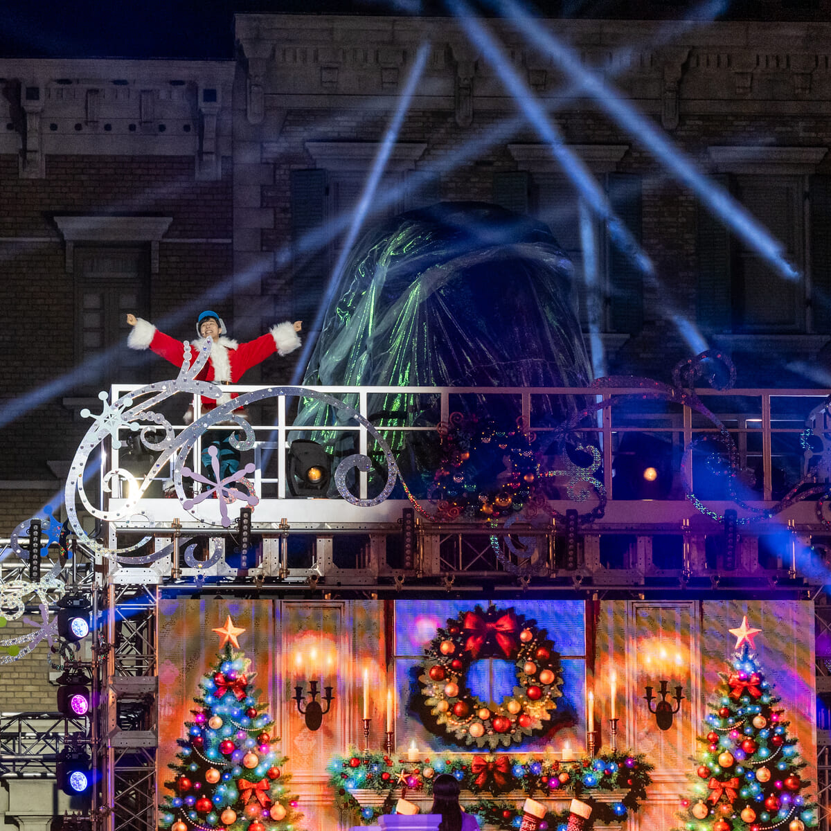 「ライト・アップ・ザ・ナイト〜クリスマス・セレブレーション〜」は、グラマシーパークを舞台に繰り広げられる新作ナイトショーです。