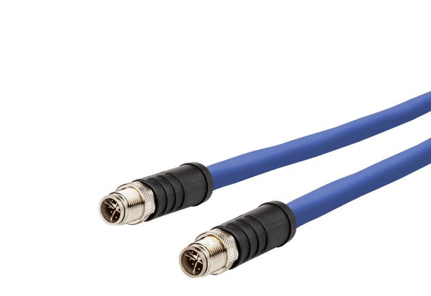 M12パッチコードは2重オーバーモールド工程により、優れた耐ノイズ性を発揮します。