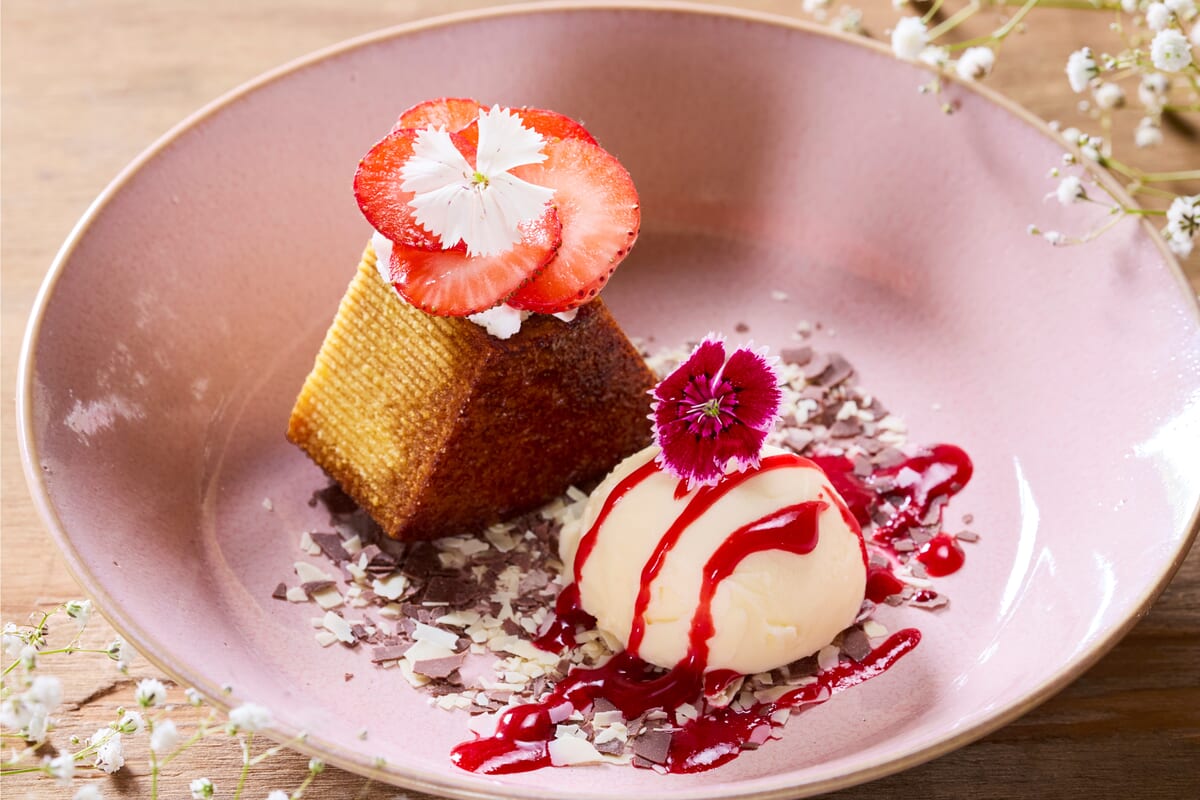 さらに「長崎県産イチゴとバームクーヘン」などのほか「ルーベンスマルシェ」で人気のバームクーヘンや濃厚なクリームチーズ、阿蘇バジルソースなど、選び抜かれた食材がシェフの感性によって“ここでしか味わえない一皿”に。