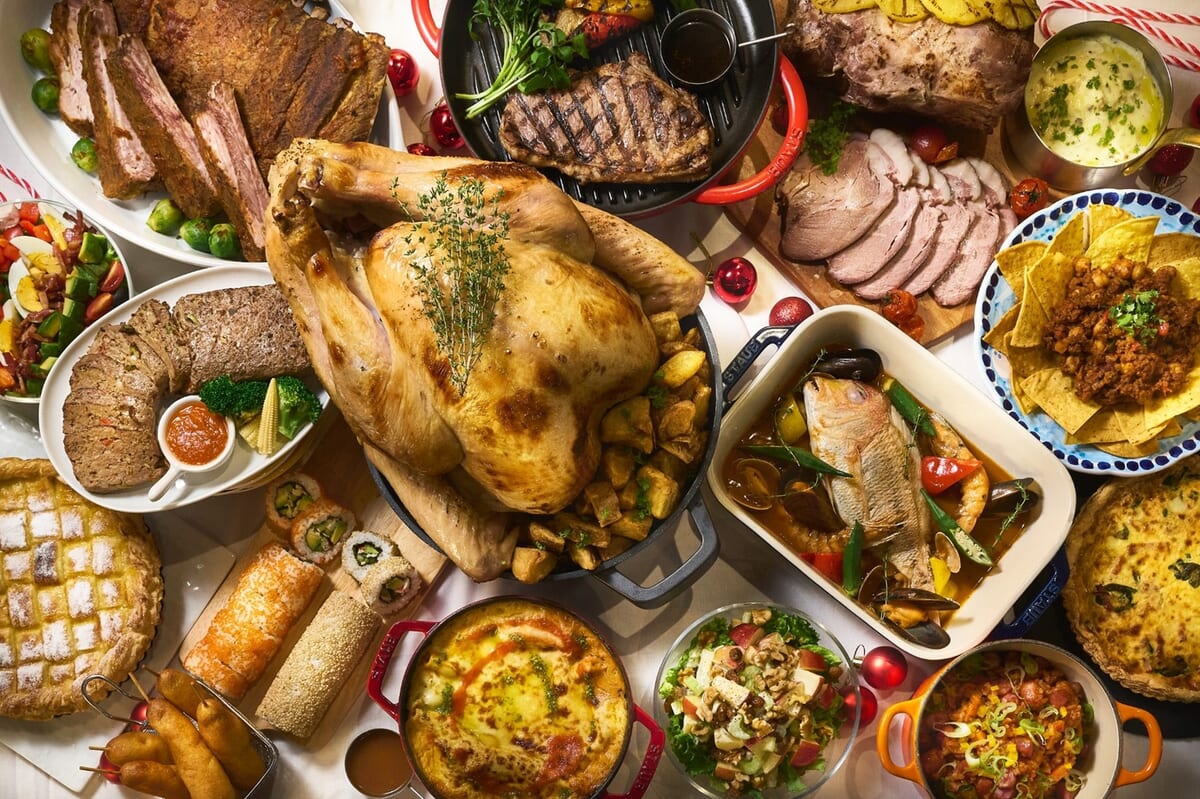 香ばしく焼き上げたローストターキーやグリルステーキ、とろけるようなハニーローストポークにジューシーなポークBBQスペアリブ、人気のラザニアまで充実のラインナップ。