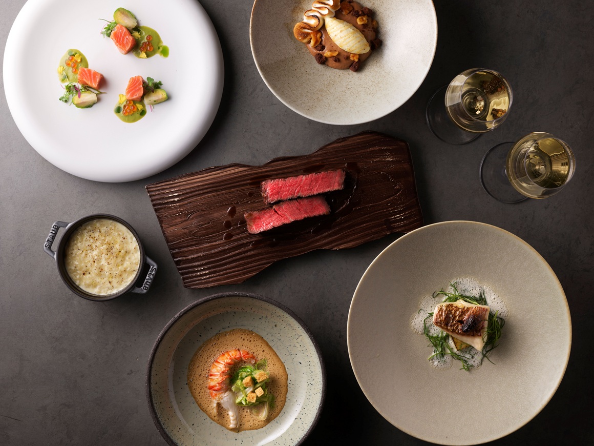 シグネチャーコースでは、食材の旨みが際立つ「伊勢海老のグリル」や「薪火で焼き上げた国産牛フィレ肉」「横濱ビーフサーロイン」をセレクト。
