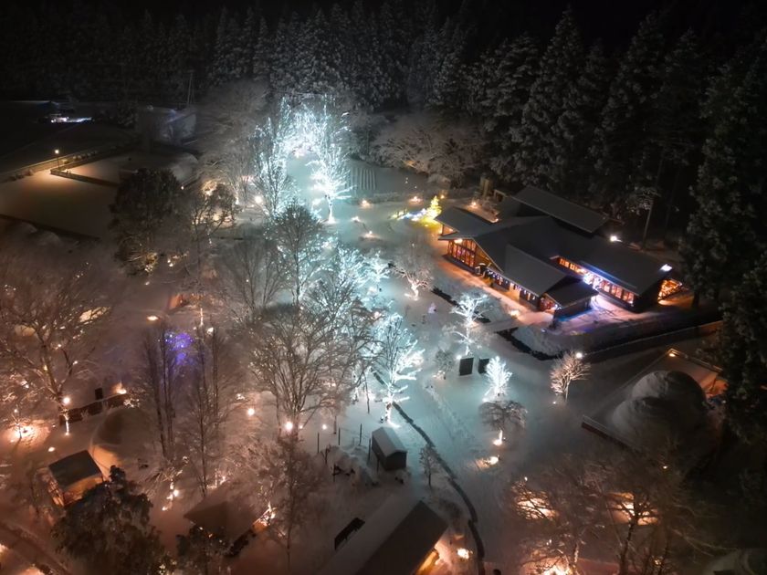 冬の澄んだ空気の中、ブリリアントヴィレッジ日光が幻想的な光に包まれます。