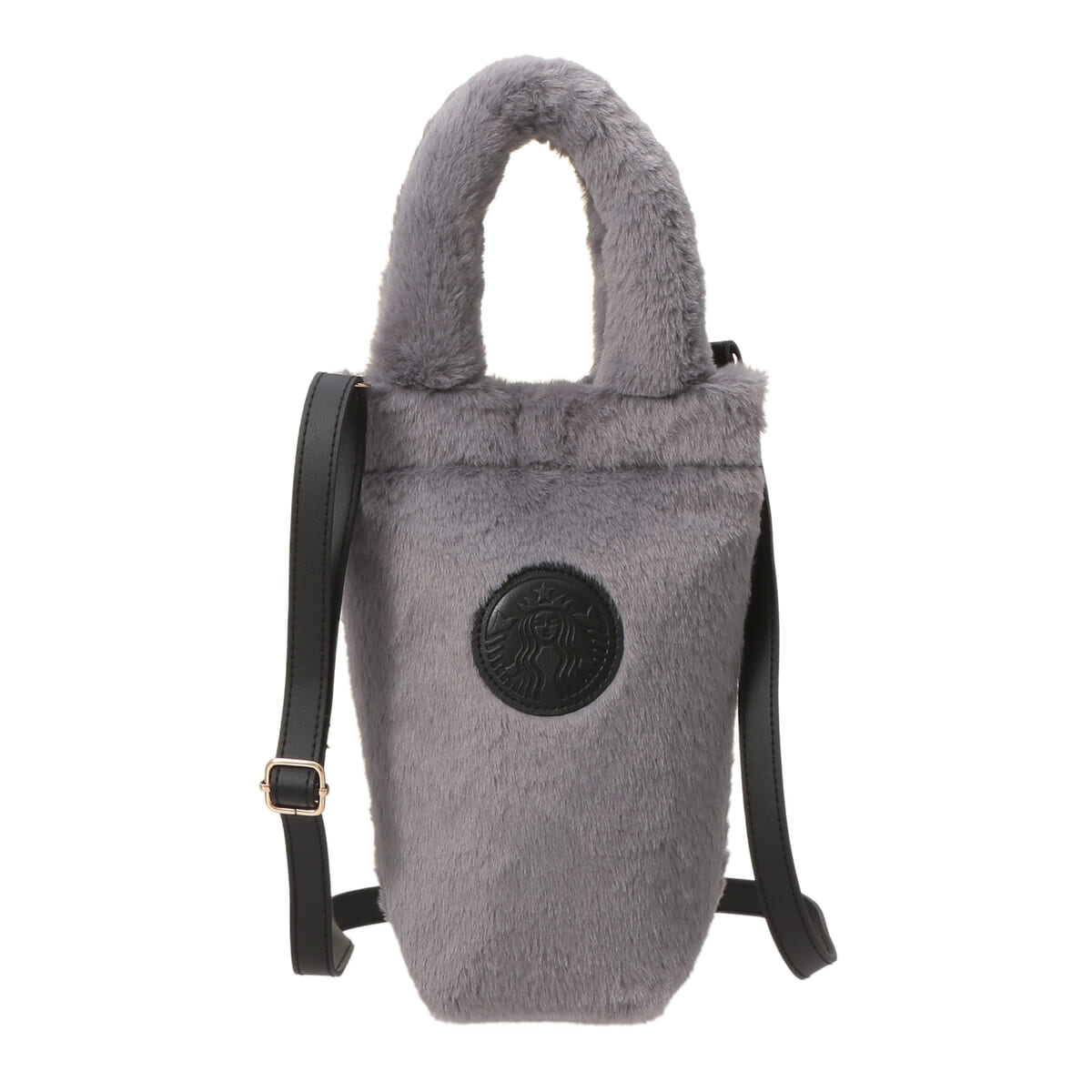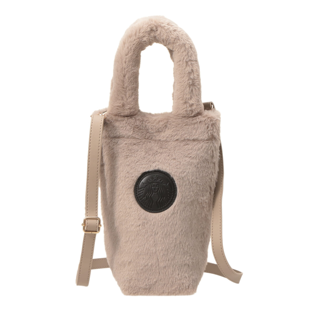 あたたかみのあるもこもこしたファーのボトルショルダーバッグ。