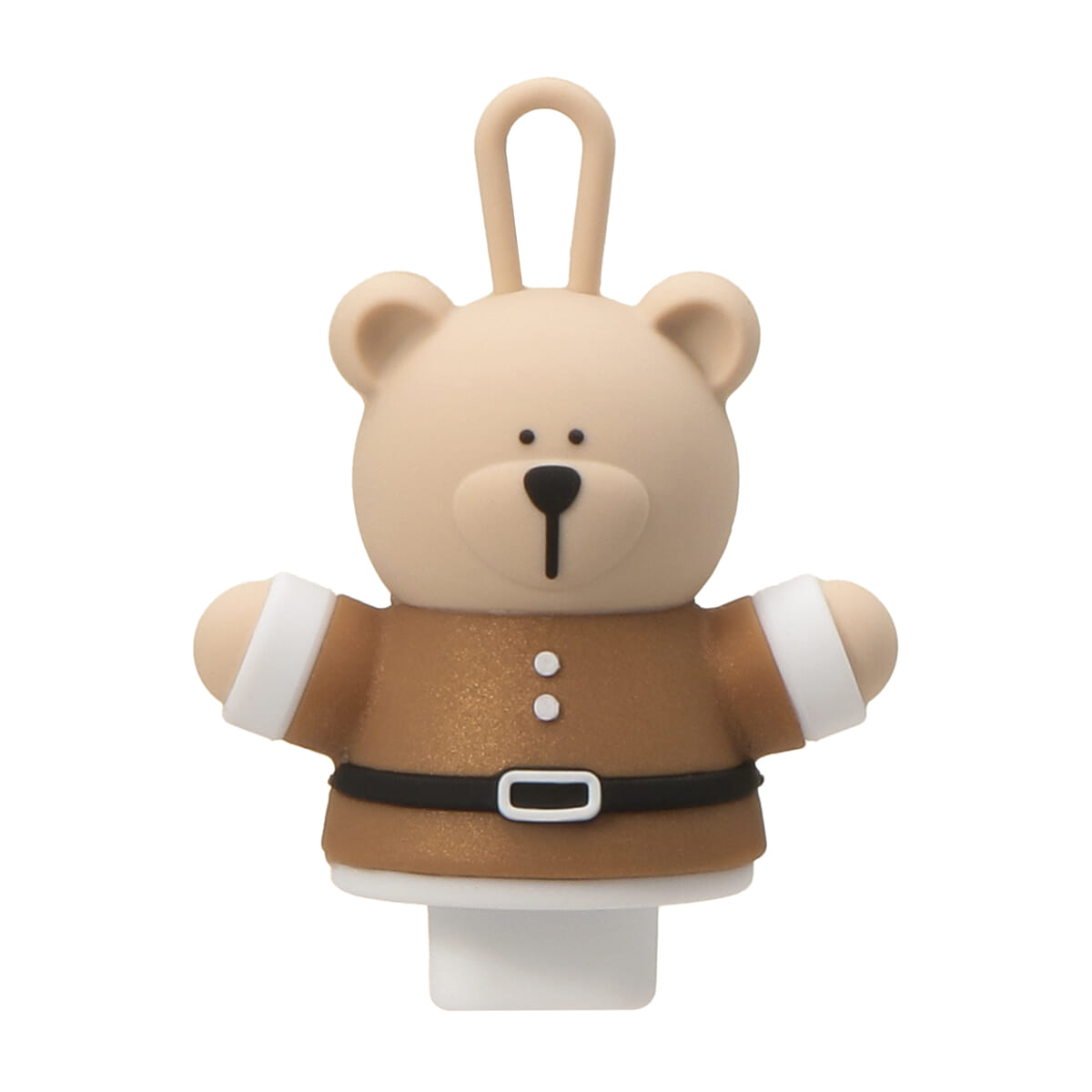 ゴールドのサンタに扮した「ベアリスタ」の、ドリンクホールキャップ。