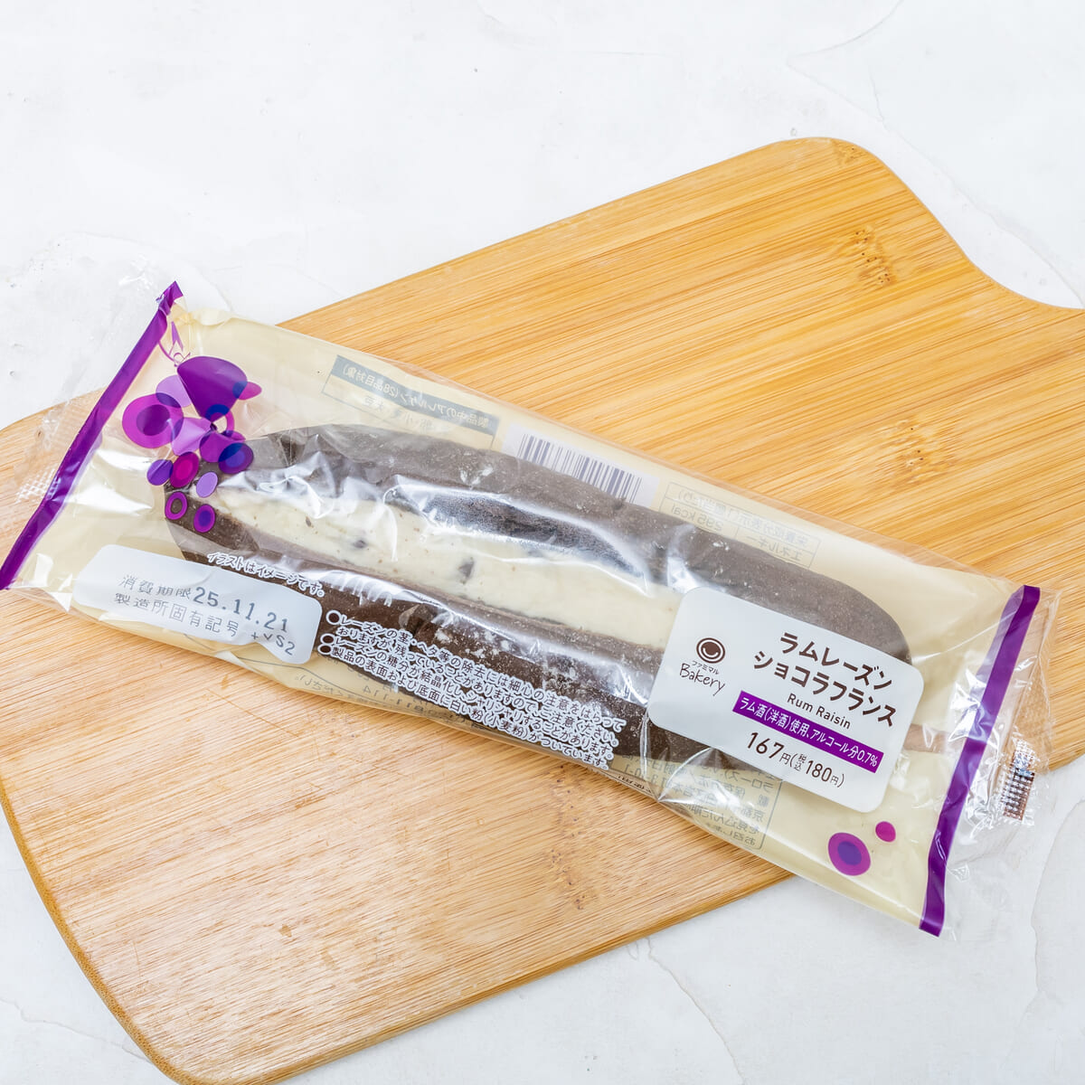チョコフランスパン生地にラムレーズンクリームをサンドした「ラムレーズンショコラフランス」