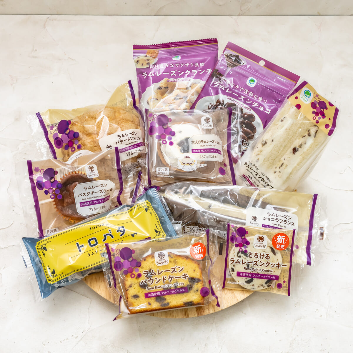 「ラムレーズン」の味わいのデザートや焼き菓子、パン、菓子、サンドイッチ、アイスなど全11種類が展開されます☆