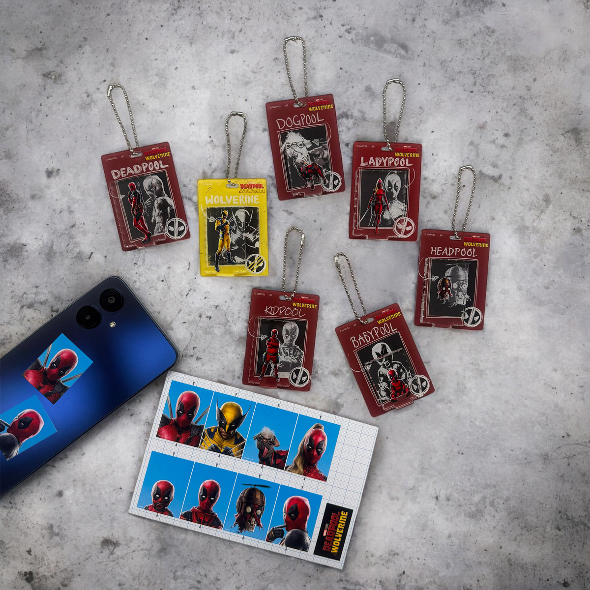 【先行販売】「デッドプール&ウルヴァリン」ブリスター風アクリルキーチェーン/証明写真風ステッカー