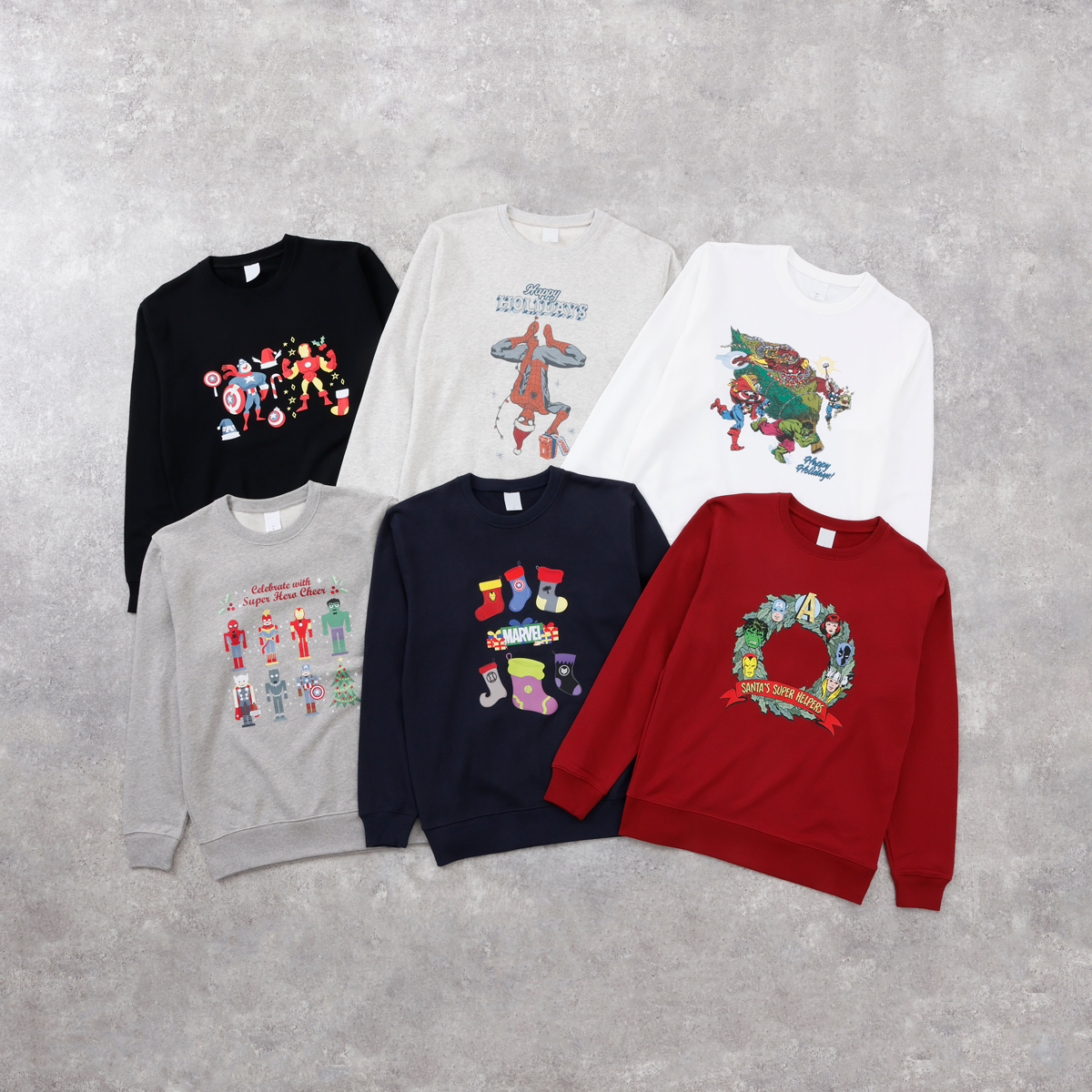 「マーベル」ランダムスウェットには、マーベルヒーローたちが多数登場。