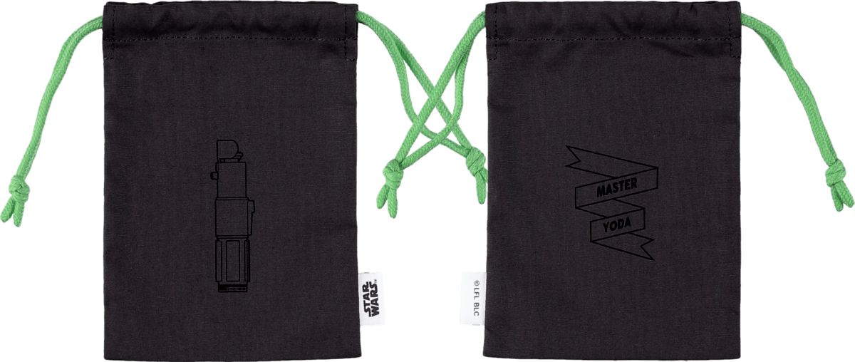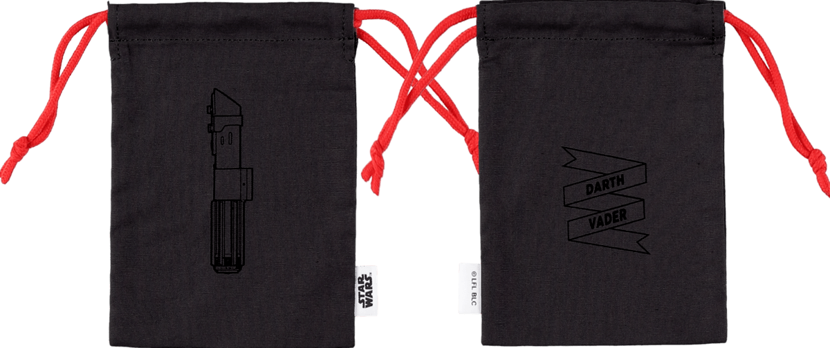 「スター・ウォーズ」に登場する「ライトセーバー」を描いた巾着。