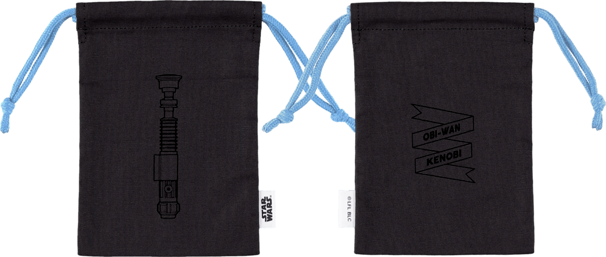 「スター・ウォーズ」に登場する、ライトセーバーの線画イラストをプリントした巾着は、ファンにはたまらない持ち歩けるグッズ。
