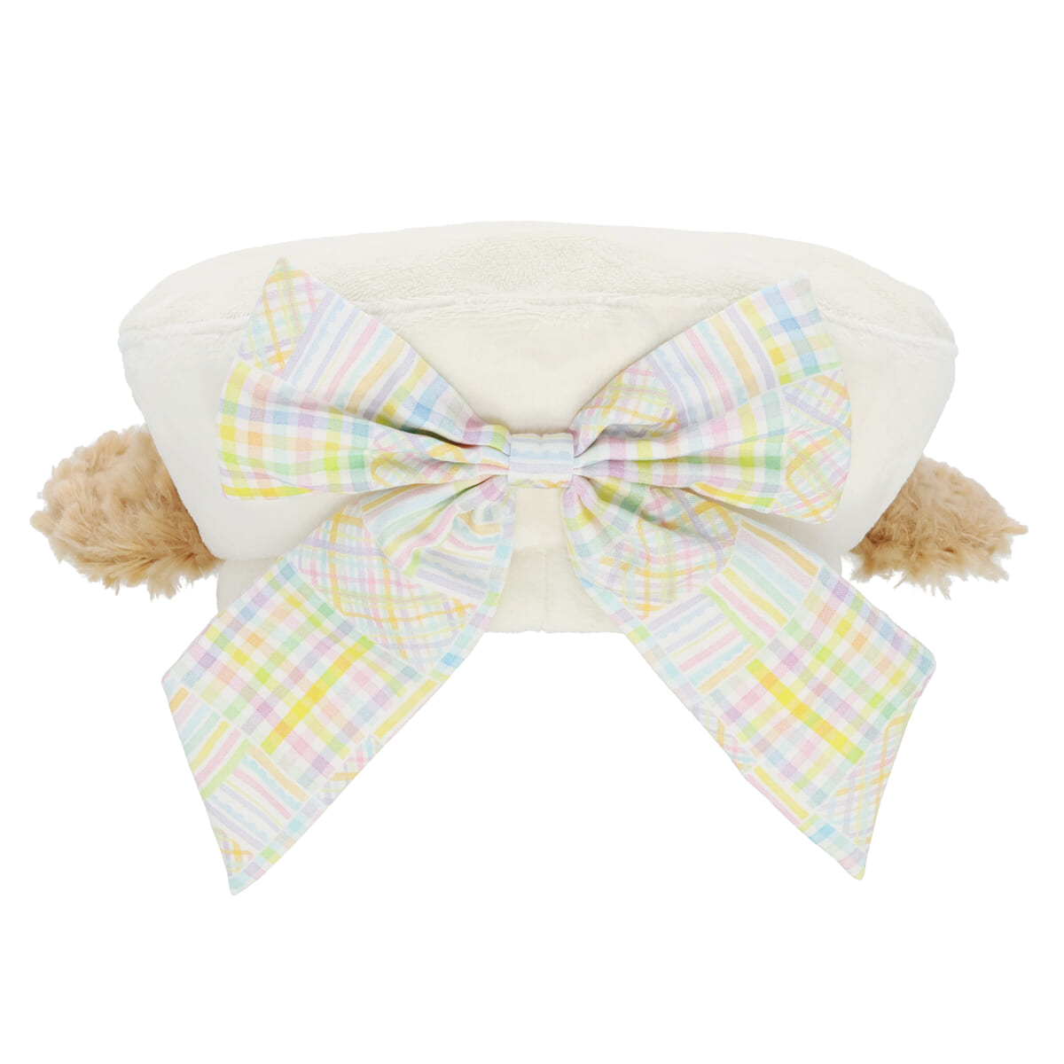 後ろにはパステルカラーのチェック柄リボンが付いており、バックスタイルも可愛らしく決まります。
