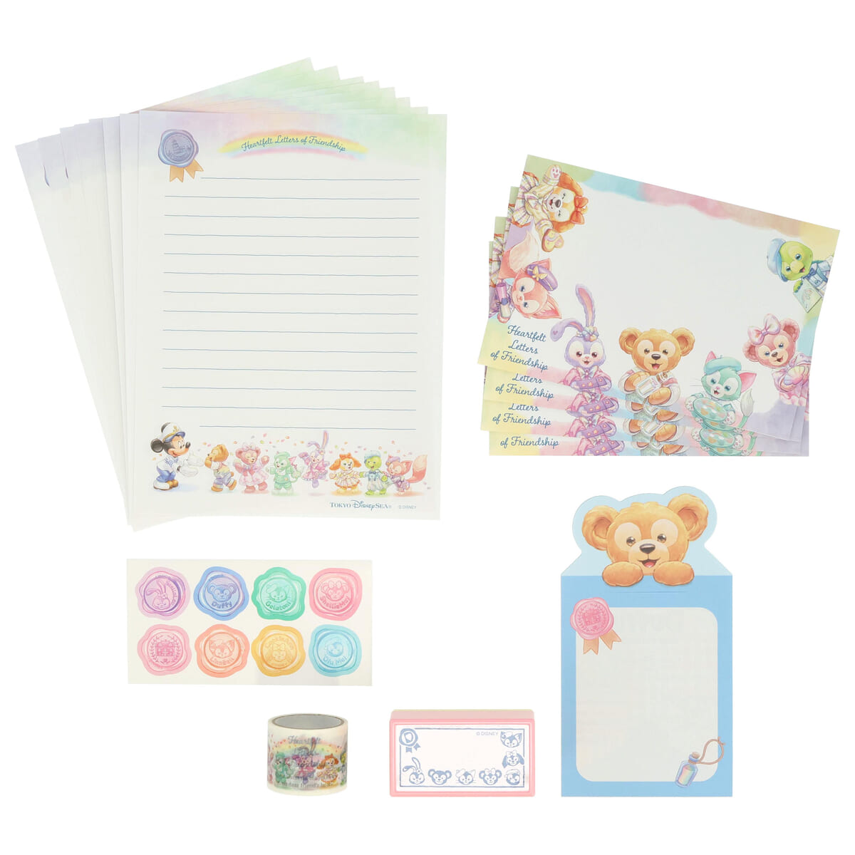 手紙を書くダッフィーたちの様子がデザインされたレターセット。