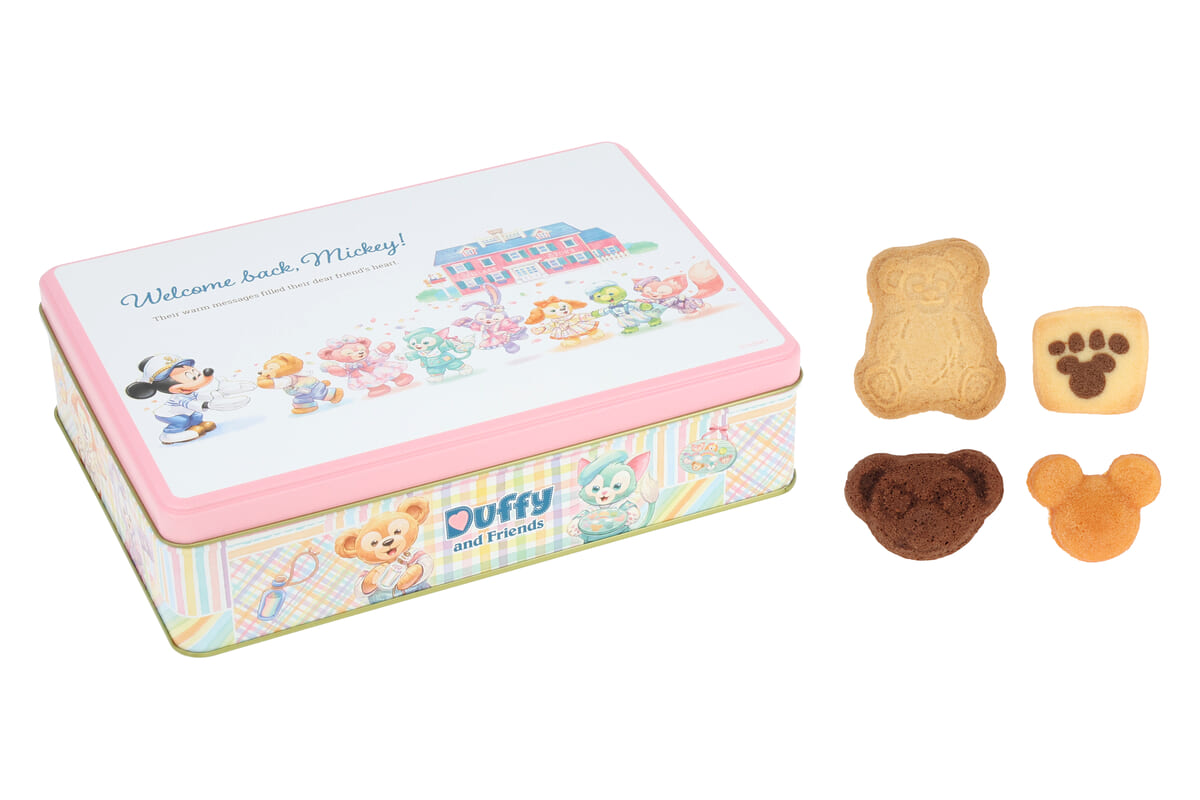 ミッキーとダッフィーたちの再会シーンが描かれた缶は、食べ終わった後も小物入れとして大切に使いたくなるデザインです。
