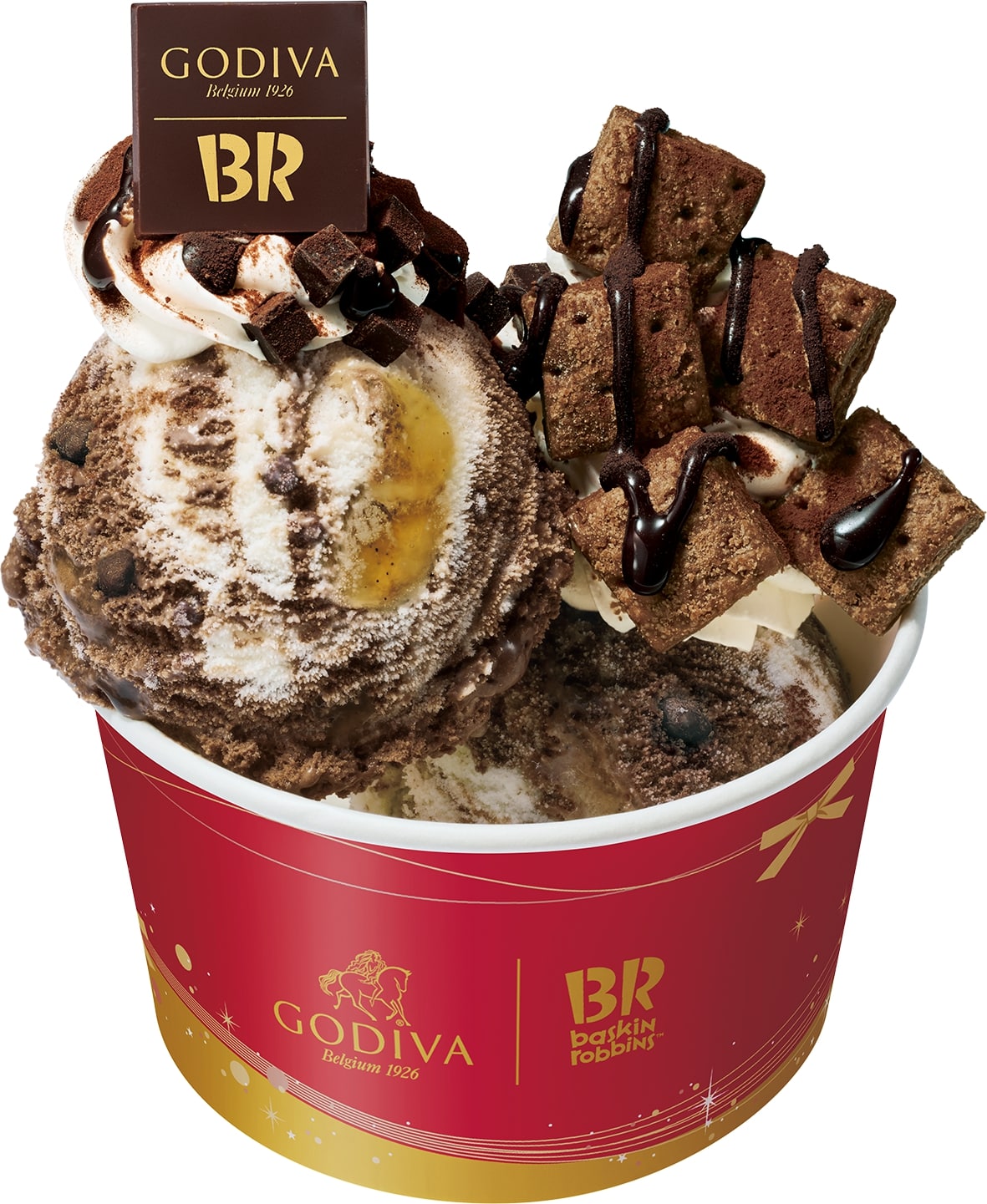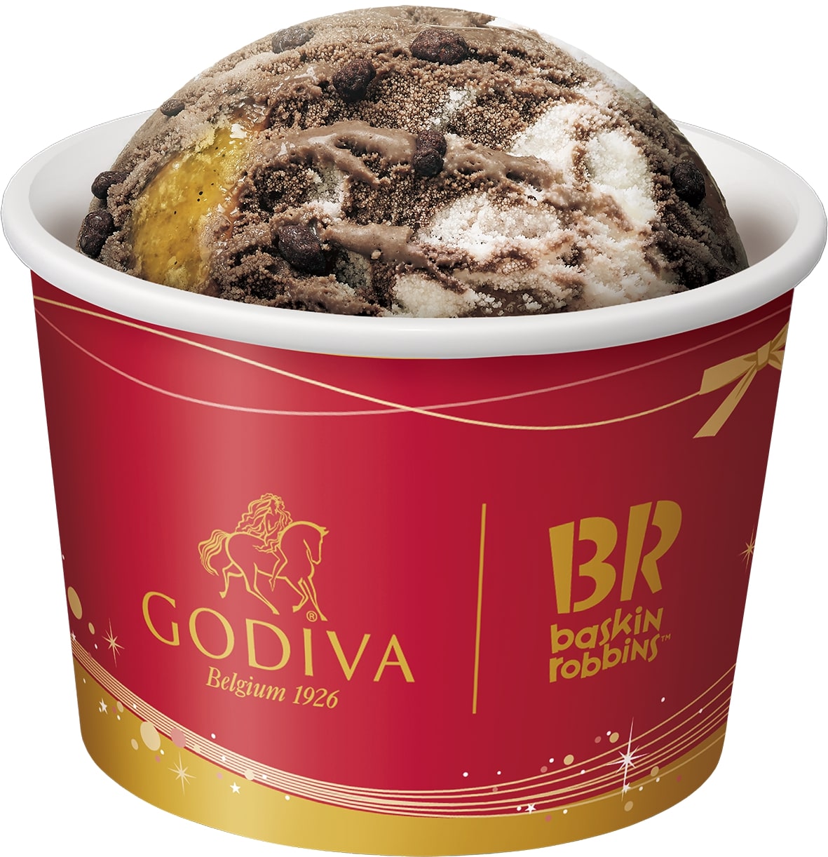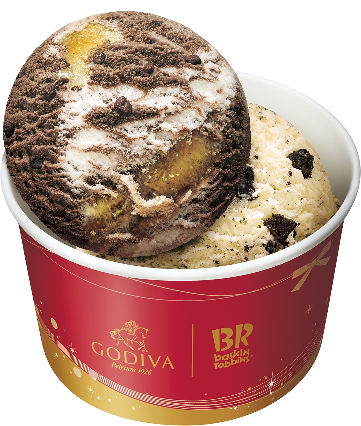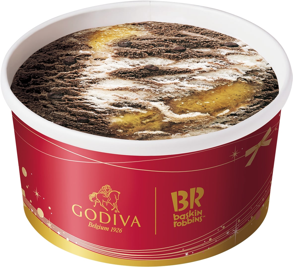 2種類のチョコレートと芳醇な香りのバニラリボンが三位一体になったおいしさで、見た目もクリスマスにぴったりな、ゴディバとサーティワンの自信作です。