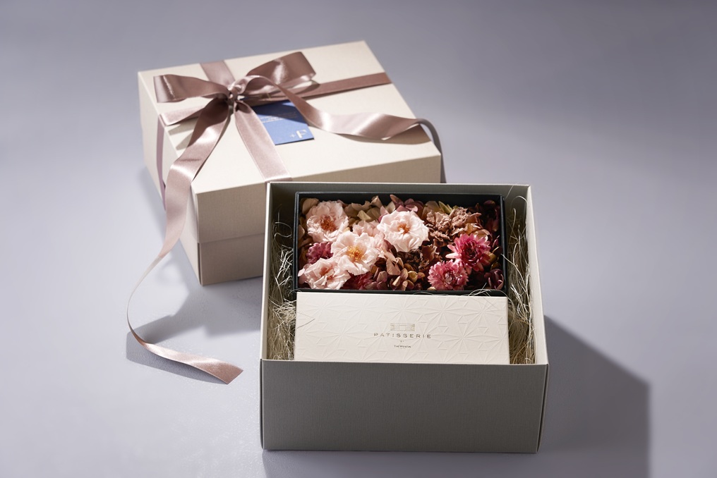 プリザーブドフラワーのギフトBOXに、ホテルメイドの「果内水晶ショコラ」を詰め合わせた限定セット。