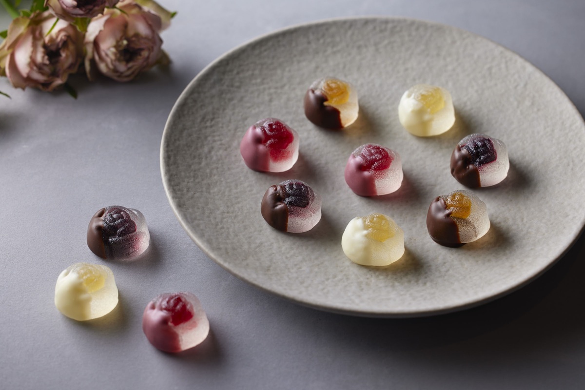 透明感のある輝きと甘酸っぱいゆずやカシスの香りに、異なるテイストのチョコレートが織りなす、新しいショコラの体験が提供されます。