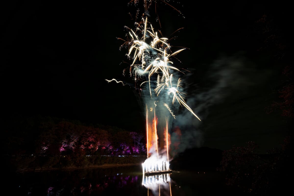 ムーミンバレーパークのオリジナルソングに合わせて実施される『ムーミン谷の湖上花火大会~冬~』
