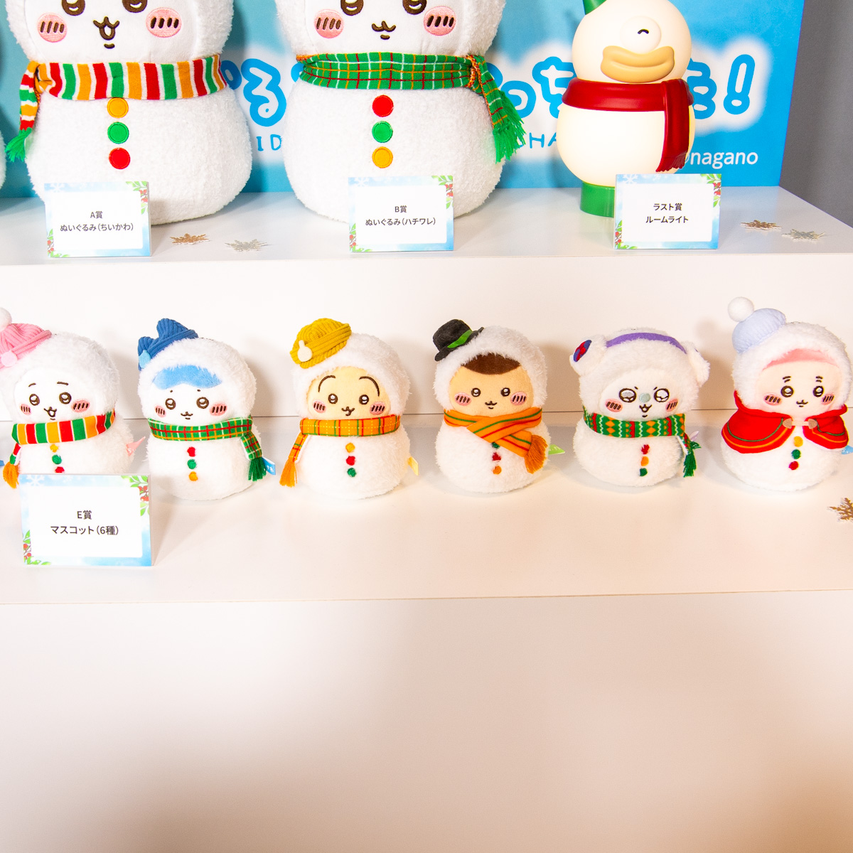 雪だるま姿のちいかわたちや、あのこ、オデなど、作品の魅力がたっぷり詰まった冬限定のくじコレクション。