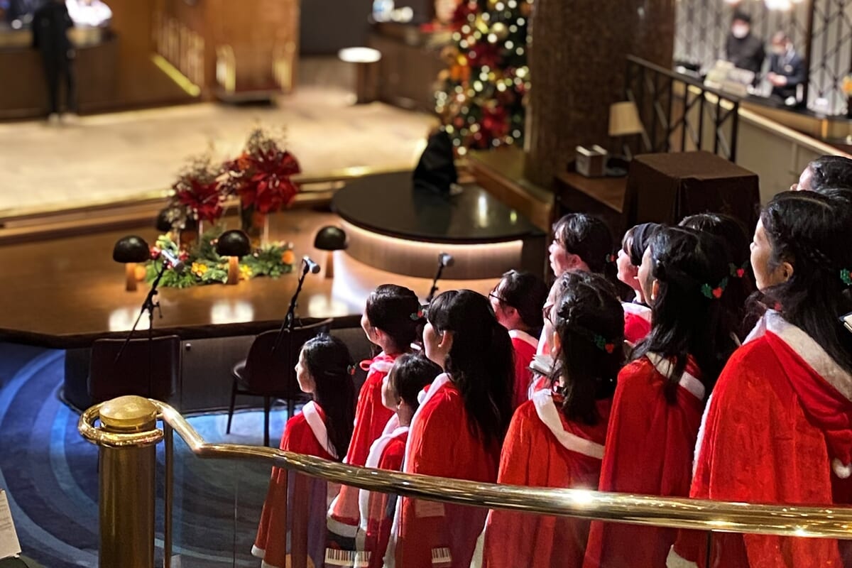 吹き抜けのロビーに響き渡る歌声とともに、クリスマスシーズンならではの温かなひとときをお届け。