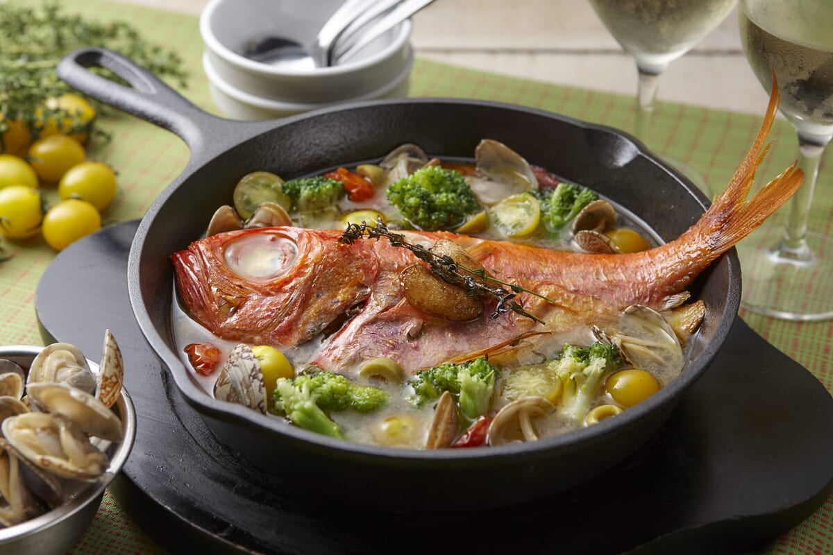 三浦半島で釣り上げたキンメダイを丸ごと1尾使用した「三浦半島“釣りキンメ”のまるごとアクアパッツァ」