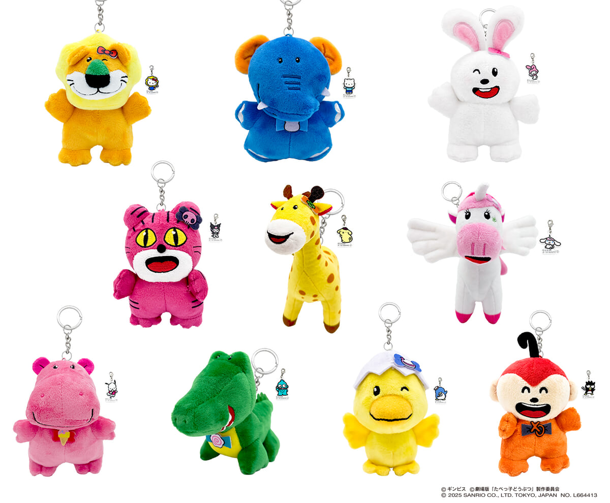 先行発売の「ぬいぐるみマスコット」をはじめ、コラボイラストをあしらった「トレーディングラバーキーホルダー」「メモ帳」「サガラ刺繍ポーチ」 「クリアマルチケース」、どうぶつさんたちの姿になったサンリオキャラクターが愛らしい「着ぐるみマスコット」など、幅広いグッズが揃います。