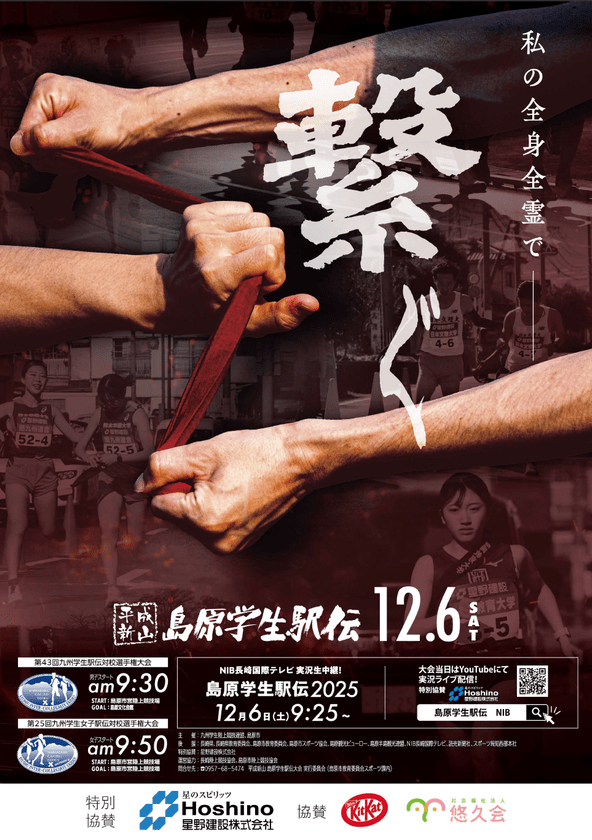 九州学生陸上競技連盟と島原市が、雲仙・普賢岳噴火災害からの復興を祈念して創始された「平成新山島原学生駅伝」を開催。2025年12月6日、島原市営陸上競技場をスタートし、熱いタスキリレーが繰り広げられます。
