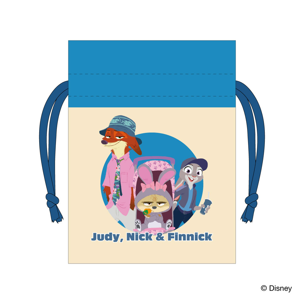 ニックとジュディの巾着は、キャラクターの服装にリンクしたカラー。