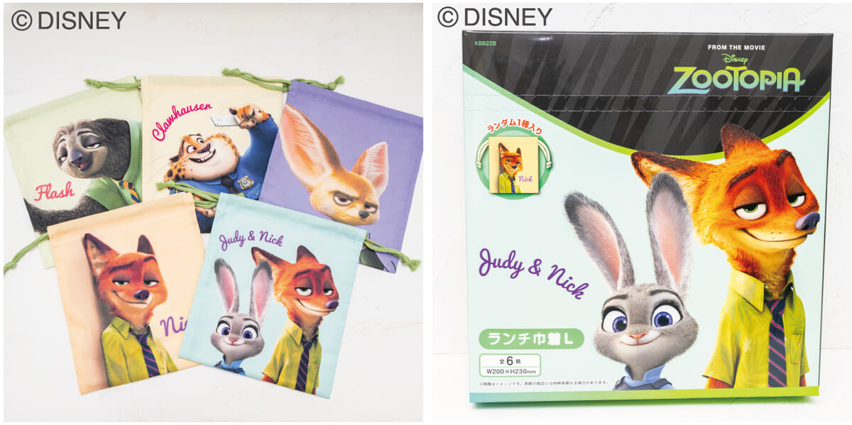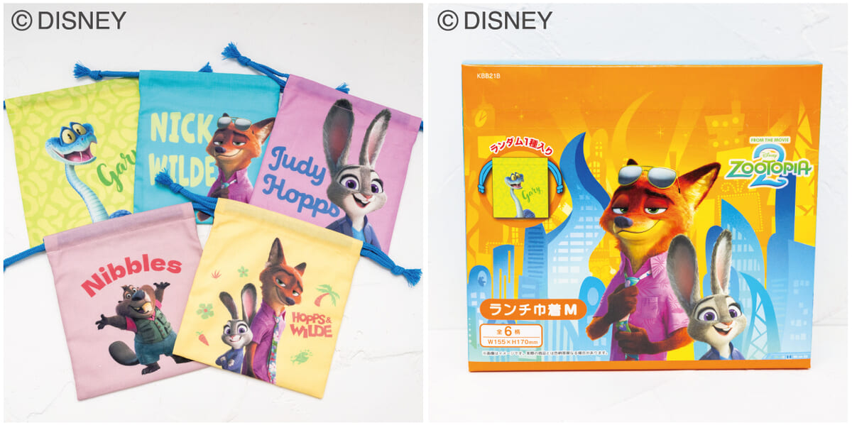 どのデザインが出てくるか、開けてみてのお楽しみなブラインドパッケージで、『ズートピア』&『ズートピア2』のランチ巾着がラインナップ。