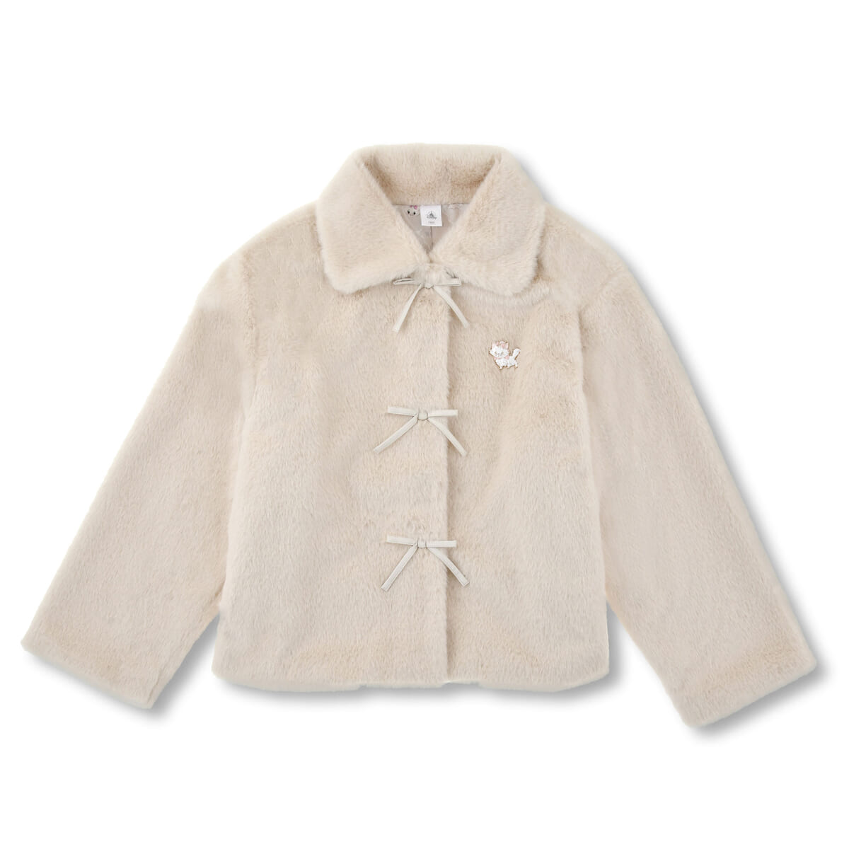 かわいくて表情豊かな子ネコ「マリー」をモチーフに、少しレトロでクラシックな雰囲気に仕上げられたブローチ付きのフェイクファーブルゾン。