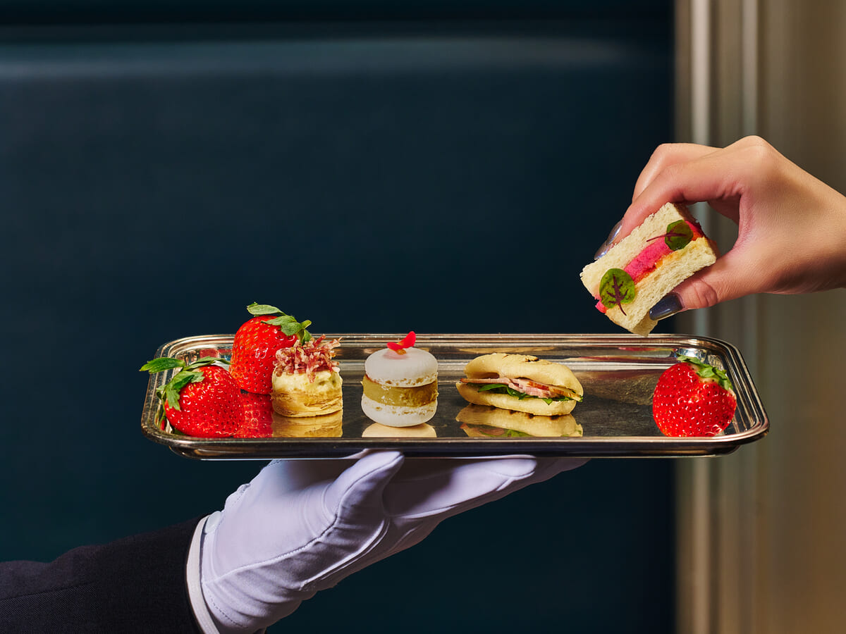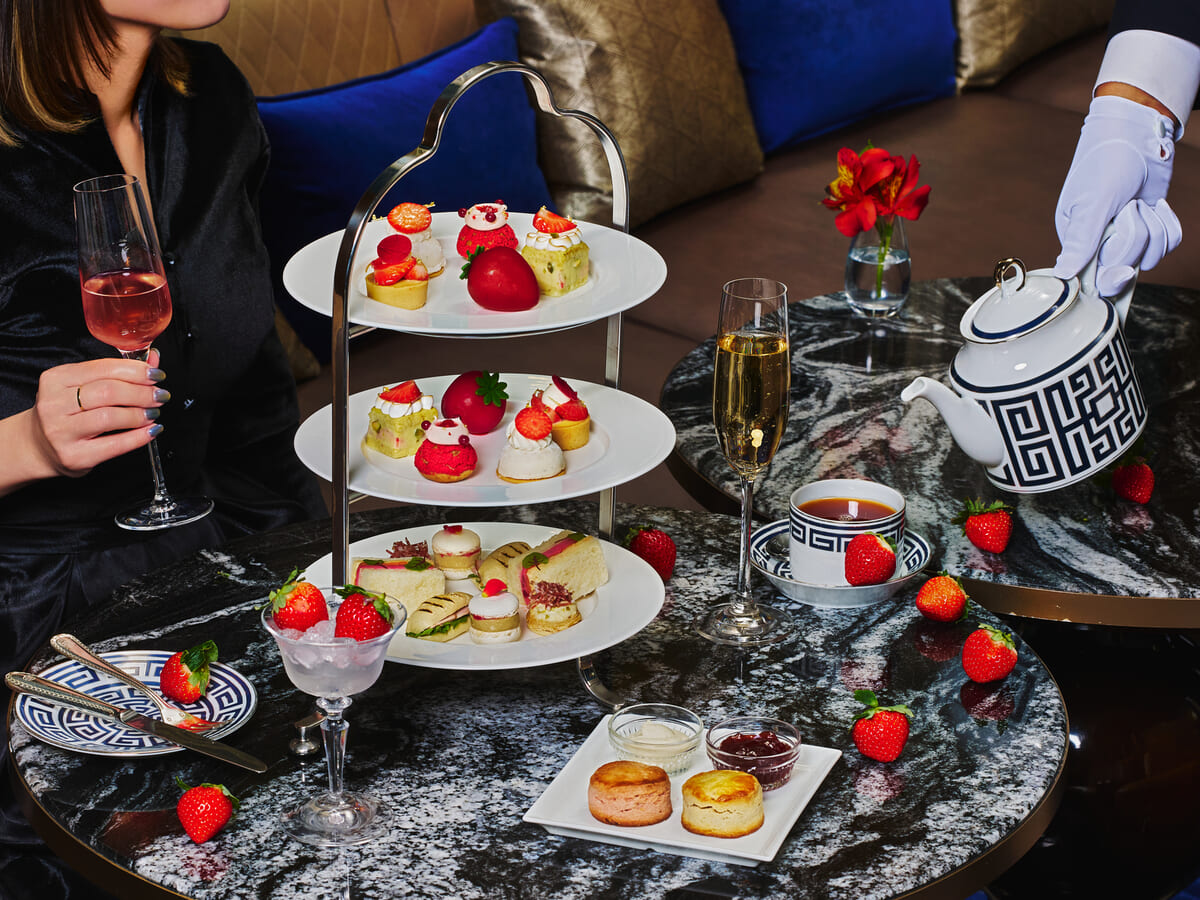 5つのスイーツと4つのセイヴォリー、スコーンで構成された「セントレジス・ストロベリーアフタヌーンティー」