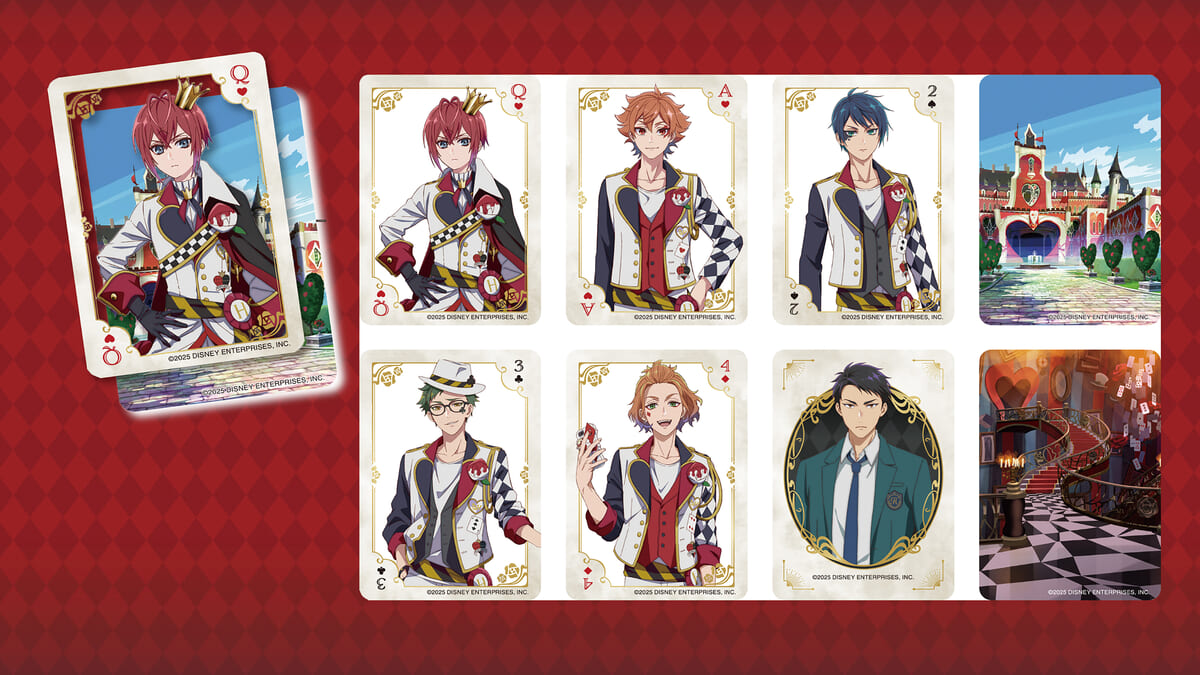 特別付録のオリジナルクリアカードは、ハーツラビュル寮生5名と監督生・円満雄剣に、背景カード2種を付けた、全8枚。