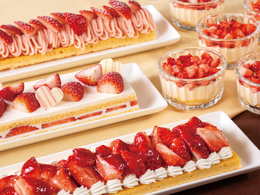 甘酸っぱい香りと味わいの「ストロベリースイーツ」も豊富に展開。