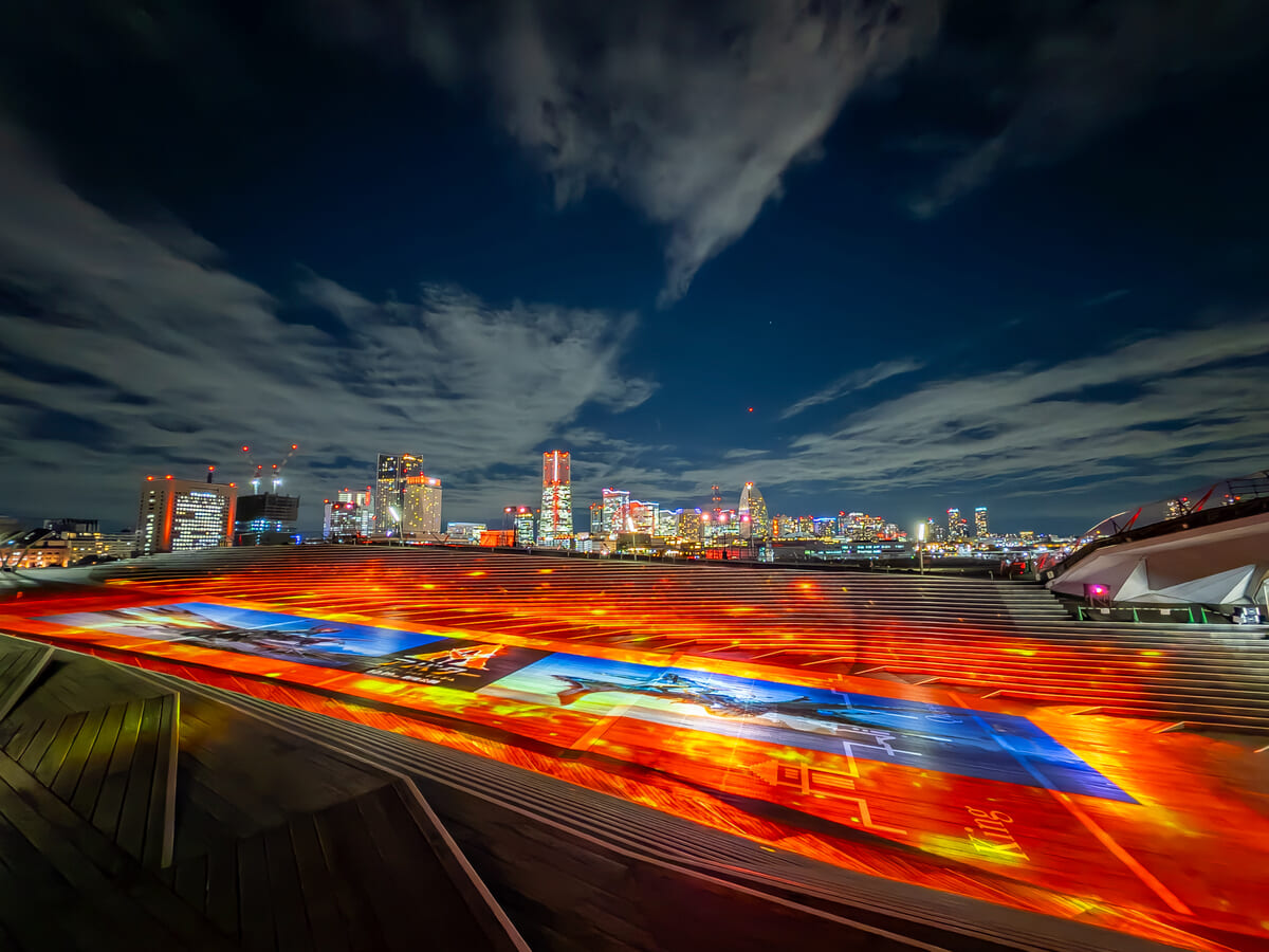 大さん橋屋上全体を演出エリアとした、国内最大級のプロジェクションマッピングも実施。