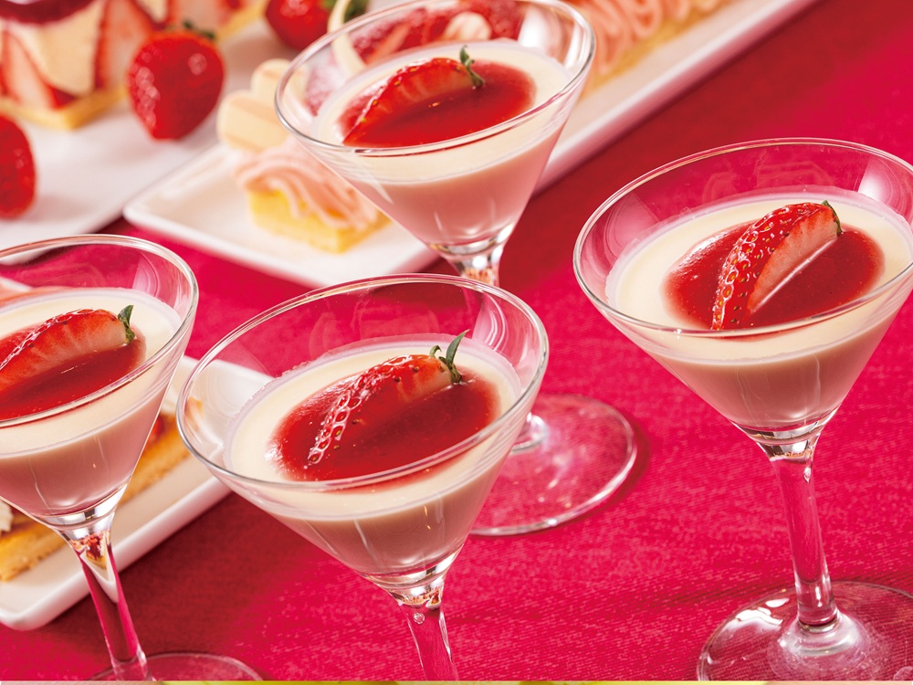 スイーツ:いちごショートケーキ、いちごのロールケーキ、いちごミルクレープ、いちごと桜のモンブランタルト、いちごとホワイトチョコのムース、いちごティラミス、いちごとピスタチオのムース、いちごとコーヒーのムース、いちごのシャルロット、いちごのレアチーズ、いちごの求肥包み、フレジェ、いちごパイ、いちごタルト、いちごスープ、いちごチーズケーキ、いちごシュークリーム、いちごマカロン、いちごミルクプリン、クレームババロア・いちごソース、いちごゼリー、オペラ、チョコレートロールケーキ、カシスショコラ、キャラメルエキゾチック、クレームブリュレ、紅茶とアーモンドのクッキー、バニラクッキー、メープル・カカオ、メープル・メープル