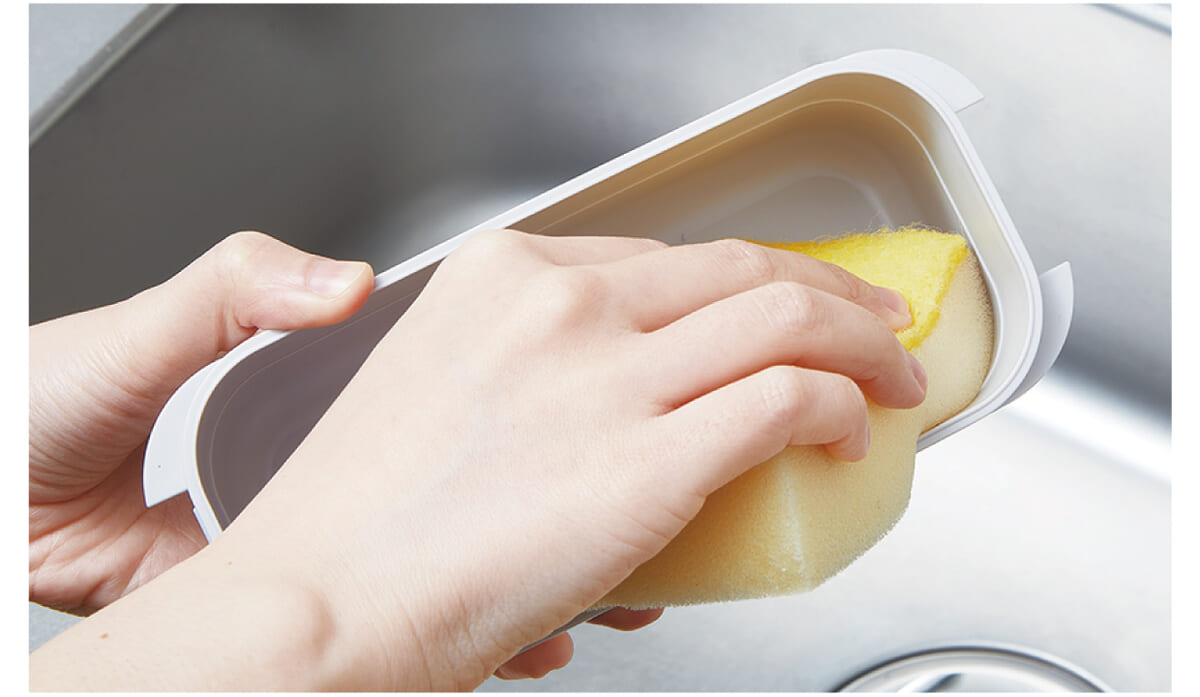 スポンジがフィットしやすい丸角形状で、すみまでしっかり洗浄できる設計。