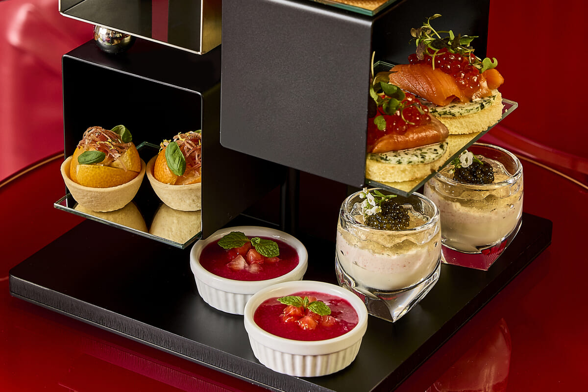 みずみずしいうるおいの世界観と、ストロベリースパをイメージした心ときめくムードが、洗練されたスイーツとセイヴォリーで表現されています。