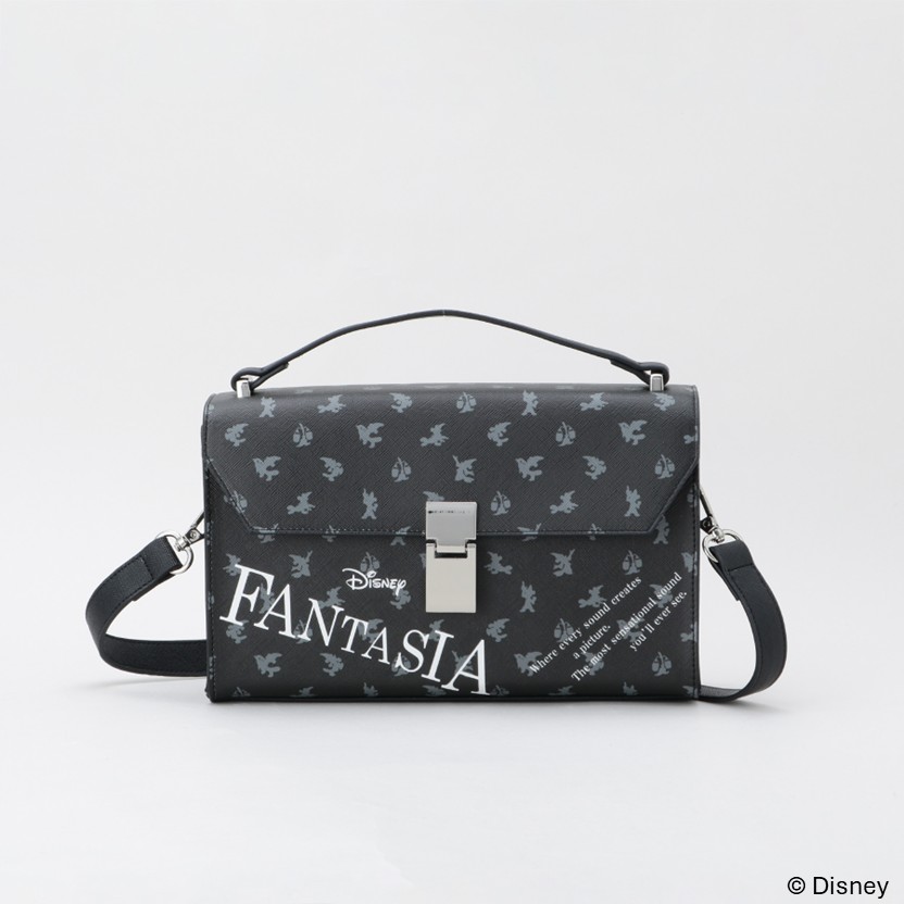 「魔法使いの弟子」と「ほうき」のモノグラムデザインで仕上げたハンドルショルダーバッグ。