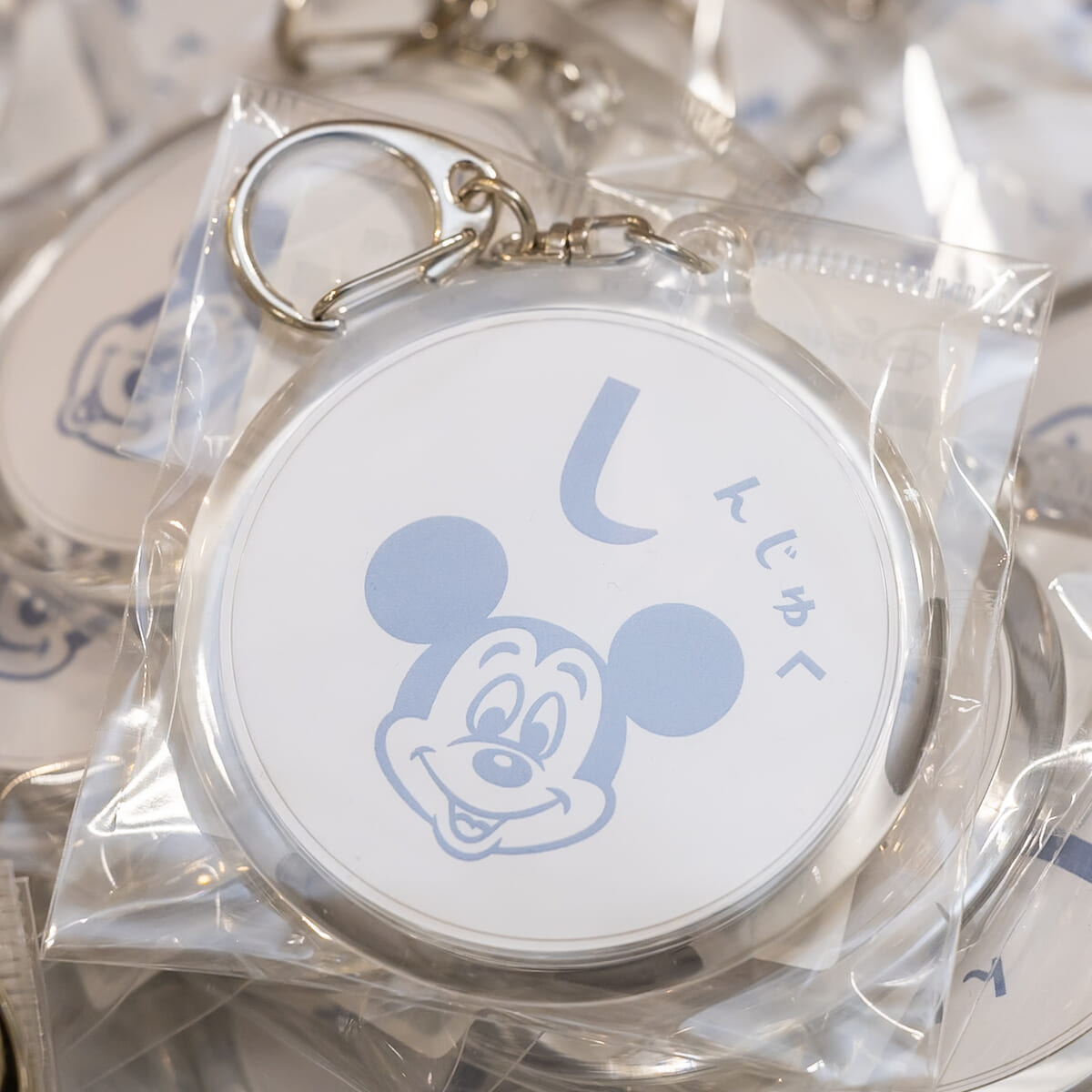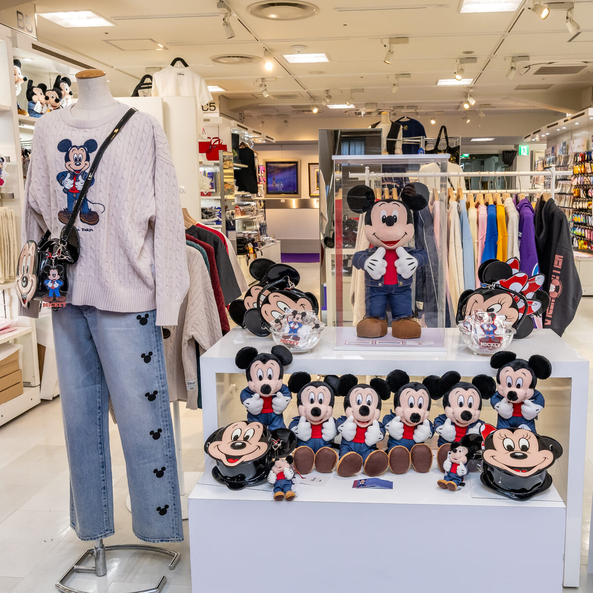 カジュアルな装いが目を惹く「ミッキーマウス」のぬいぐるみとマスコット。
